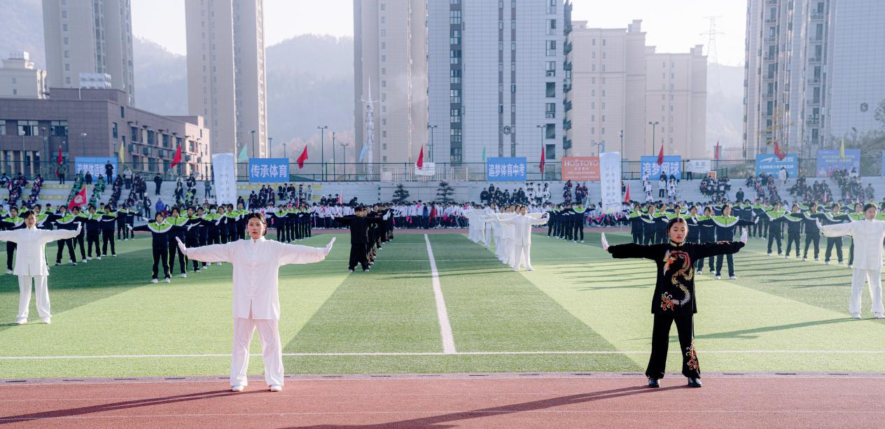 罗田县思源实验学校360名八年级学子带来精心创编的武术表演《思源·乾坤易韵》。节目巧妙融合武当太极的行云流水与少林易筋经的刚健雄浑,通过富有哲思的队形变幻,将“阴阳相生、动静相合”的中华智慧演绎得淋漓尽致。少年们步履沉稳、拳脚生风,在开合腾挪间展现顶天立地的精神气概,完成了一场对中华武学文化的深情致敬与青春解读。