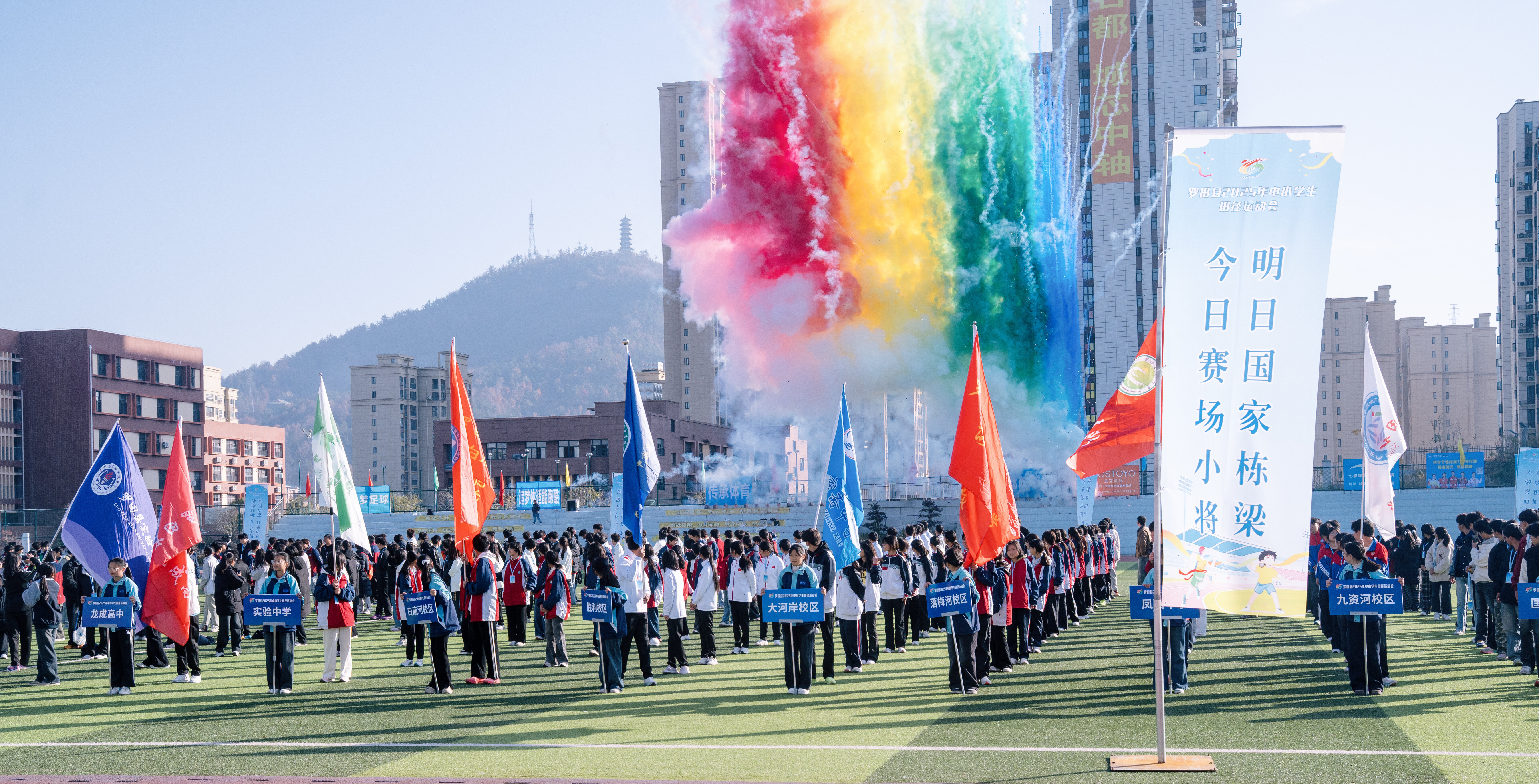 旌旗招展,青春飞扬。12月3日上午,罗田县思源实验学校运动场上气氛热烈、活力奔涌,罗田县2025年中小学生田径运动会在此盛大开幕。来自全县各中小学的运动健儿、教练员、裁判员及各界嘉宾齐聚于此,共同开启这场凝聚力量、闪耀梦想的体育盛会。