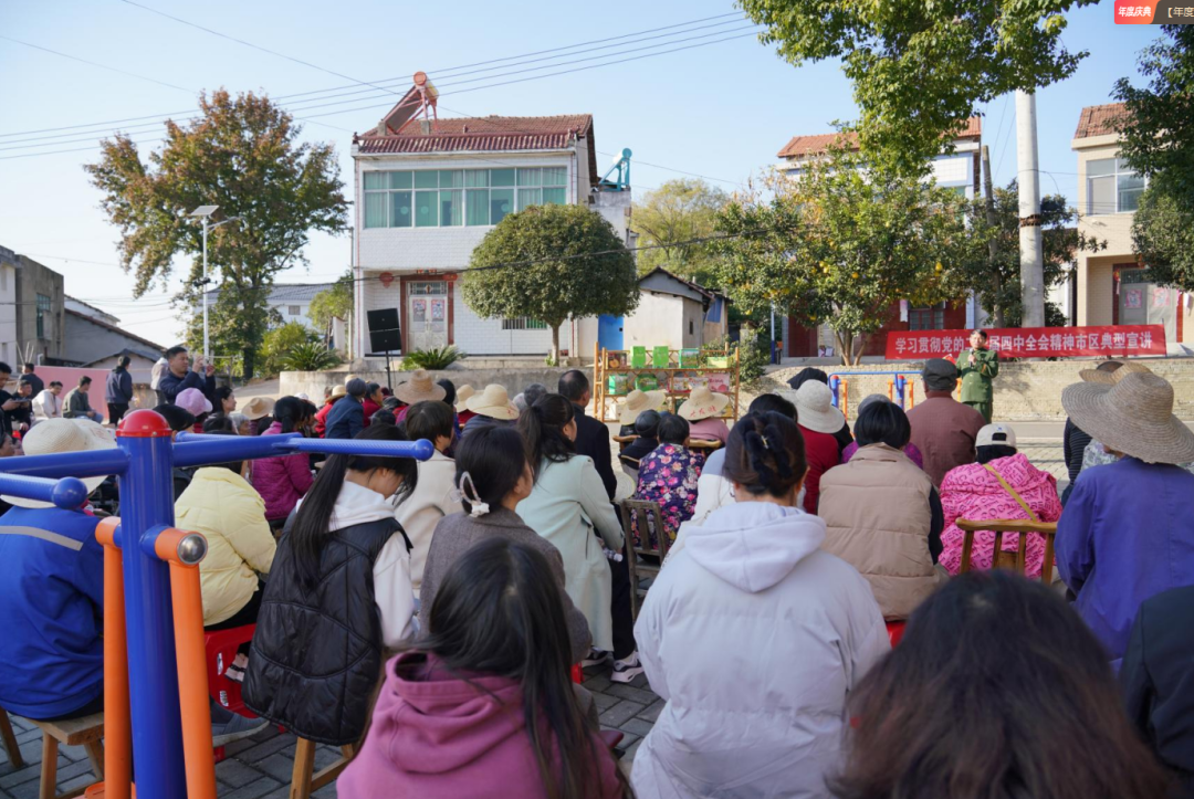 11月28日,小雪节气刚过,寒意渐浓,黄州区陈策楼镇盂钵桥村二组的小广场上却暖意融融。几十张板凳围成弧形,村民徐小礼抱着孙子早早落座,种植户夏再良骑着电动车赶来,手里攥着记事本——大家只为听“身边人”讲党的二十届四中全会那些关乎民生、连着未来的“大政策”。