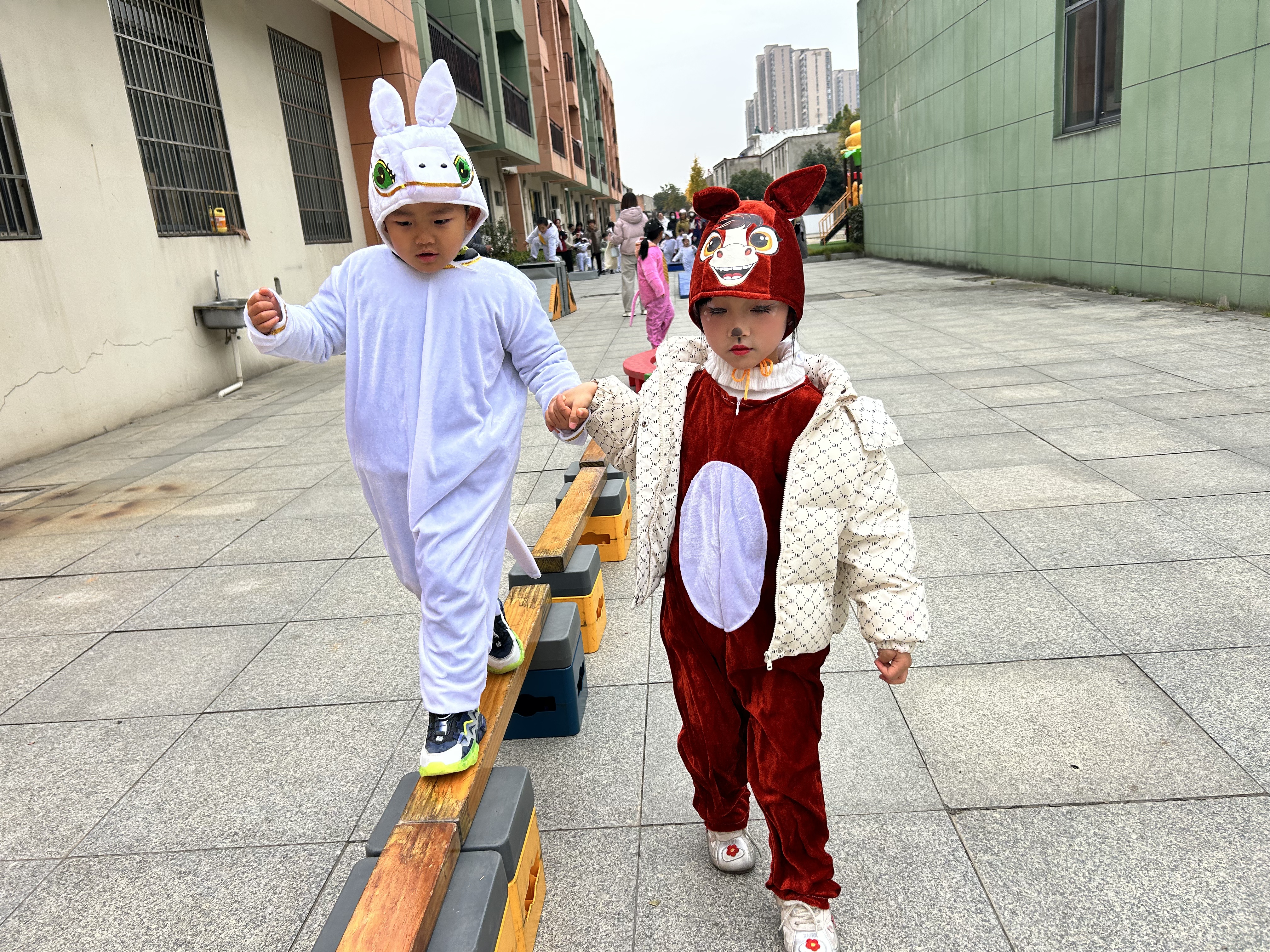 竞技通关环节无疑是重头戏。全园幼儿以混龄小组为单位组成“生肖代表队”,手持“通关文牒”,依次向12个趣味关卡发起挑战。“独鼠一帜·智慧穿越”关卡中,幼儿们灵活穿梭,锻炼钻爬能力;“牛气冲天·力拔山兮”关卡里,小队员们齐心协力合作运粮,培养腿部力量与协作能力;“虎虎生威·翻山越岭”关卡则让幼儿们在攀爬与跳跃中提升平衡能力。孩子们在游戏中尽情释放活力,欢声笑语回荡在幼儿园的每一个角落。
