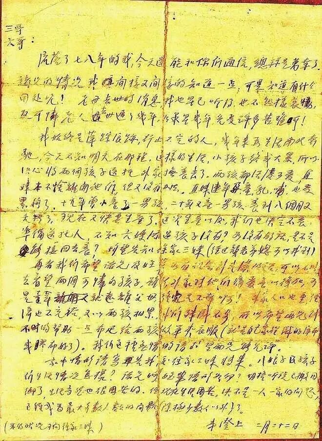 “三哥、六哥:流落了七八年的我,今天还能和你们通信,总算是万幸了……”