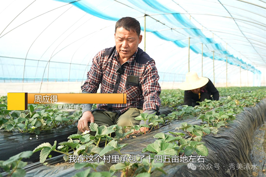 草莓种植户 周应得:我在村里承包了15亩地左右,目前棚子搭了5亩多地,管子买回来了,争取尽快搭上,(全部建成后)总产值一年20万元左右。