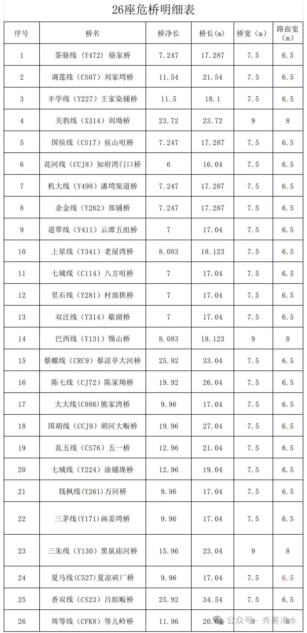近期,浠水县启动2025年农村公路危桥改造项目”。将集中对全县26座最高等级的危桥进行彻底整治。整个工程工期约210天。改造后的新桥将全面拓宽加固,彻底消除安全隐患。