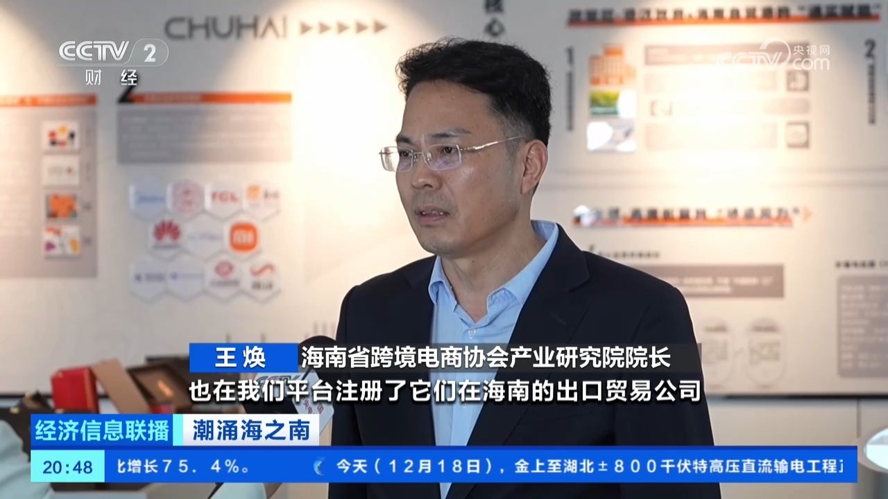海南省跨境电商协会产业研究院院长 王焕:和我们平台签约的企业已经破百家,截止到11月份,这些企业当中已经有20多家给海外仓发货,实现业务成交。从内地来的50多家工业类和农业类的企业,也在我们平台注册了它们在海南的出口贸易公司。可见这样一个生态对带动整个中国的工业链条、农业链条,通过海南出海起到了非常积极的作用。