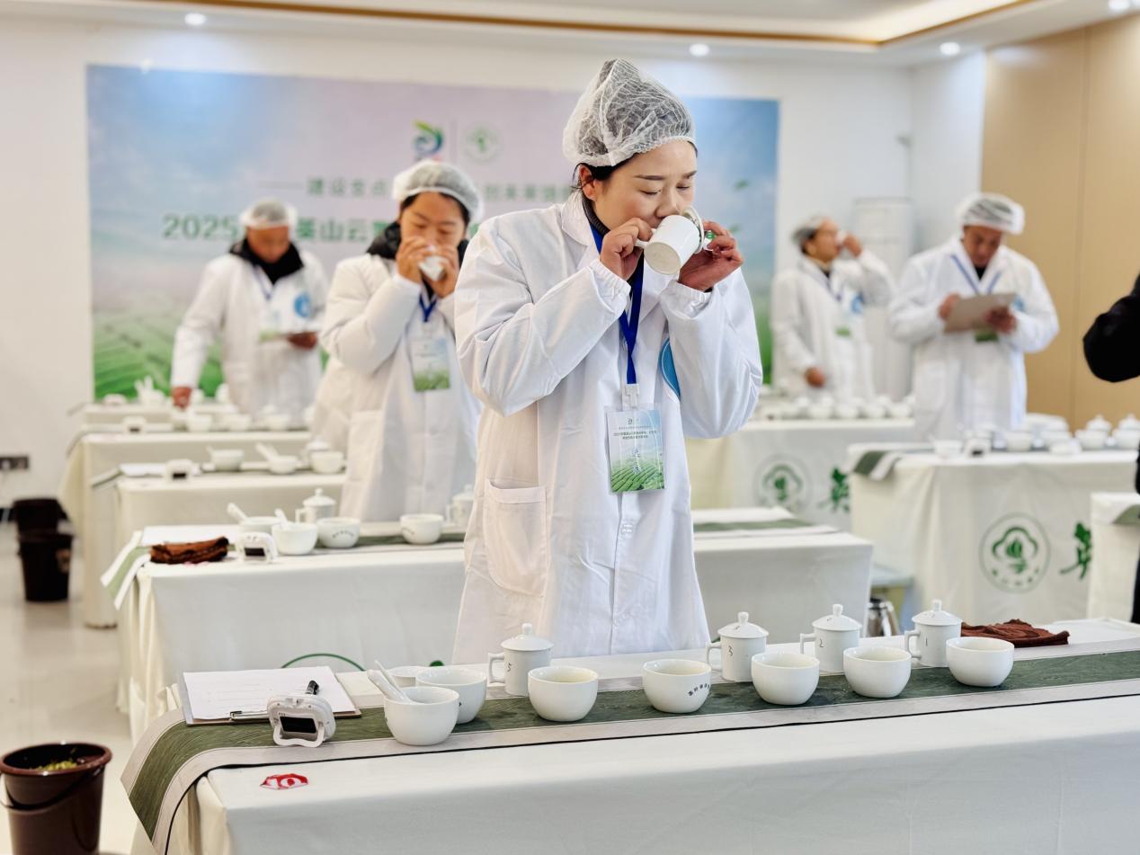 (图为2025年度英山云雾茶职业技能大赛评茶师组比赛,选手正在进行香味排序曾加子摄)