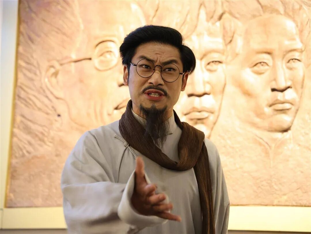 浠水文艺工作者范彬斌表演《最后一次演讲》。(湖北日报全媒记者刘毅摄)