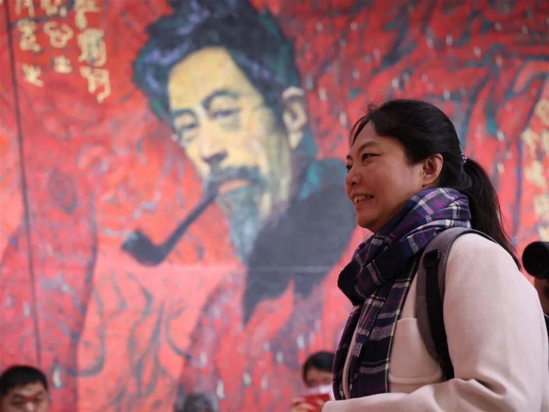 闻一多的曾孙女、北京语言大学教授闻亭与AI复活的闻一多隔空对话。(湖北日报全媒记者刘毅摄)