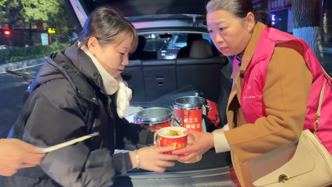 一群常年穿梭街巷的“文明使者”——出租车司机,与志愿者们共同抵达“24小时工会驿站”,将一碗碗刚出锅、冒着氤氲热气的饺子,亲手递到晨起劳作的环卫工人手中。