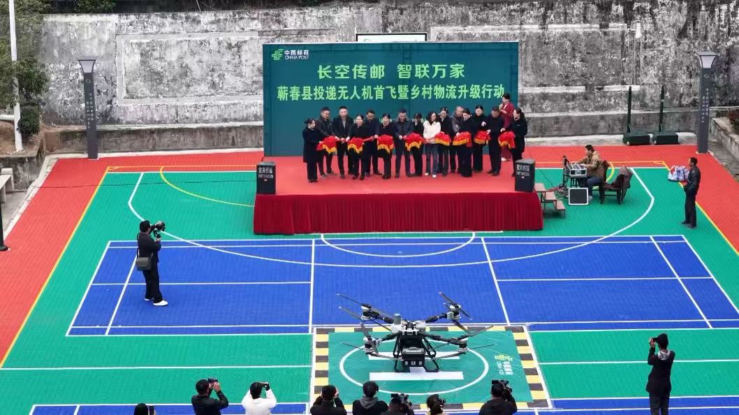 黄冈邮政首条无人机邮路在蕲春试飞成功