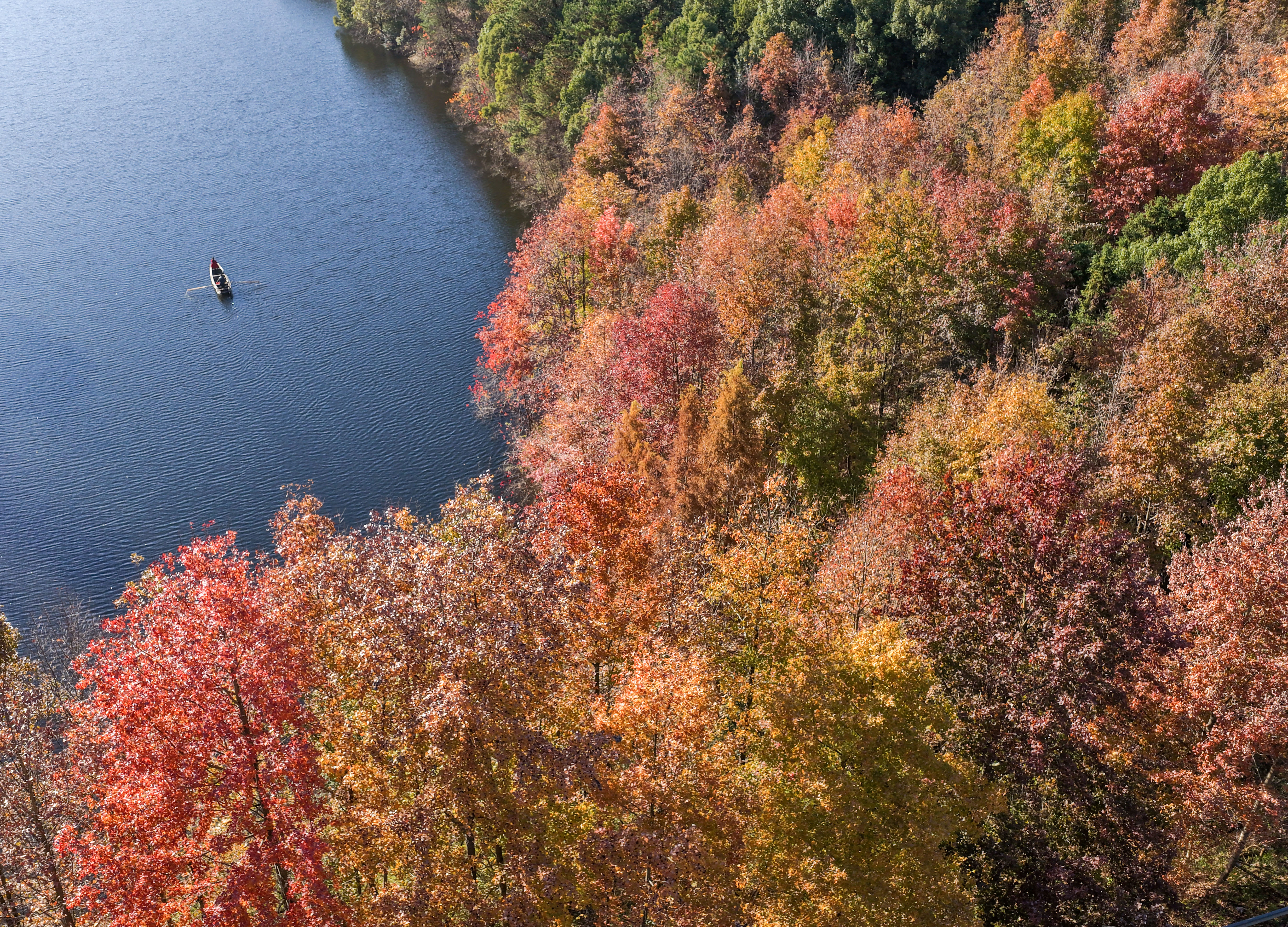 10月底至12月中旬,是蕲春县张塝镇塔林村九潭冲大峡谷最佳观赏期,连片红枫林海层层叠叠、色彩斑斓,宛如展开的壮美山水画卷,吸引众多目光。塔林村坐拥2.99万亩天然森林,其中连片红枫林面积超万亩,树龄200至300年的古枫林更是逾千亩。每年入秋,火红的枫叶沿着峡谷之巅向九潭湖岸线次第铺展,似繁花竞放,将峡谷装扮得热烈夺目,成为当地一道独特的生态风景线。