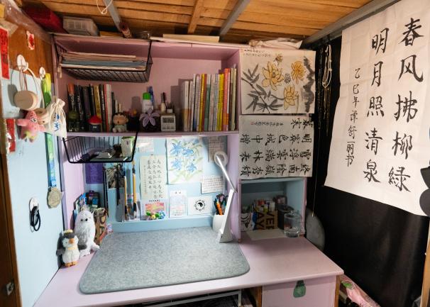 美育化人:创意赋能,空间叙事。在“门牌设计”活动中,“星辰阁”“追梦居”等充满诗意的命名取代了冰冷房号,学生亲手绘制徽章、撰写说明,将寝室打造成承载梦想与审美的“精神小家”。“最美书桌摄影展”“云端小家线上风采展”进一步拓展了美的表达与传播维度。