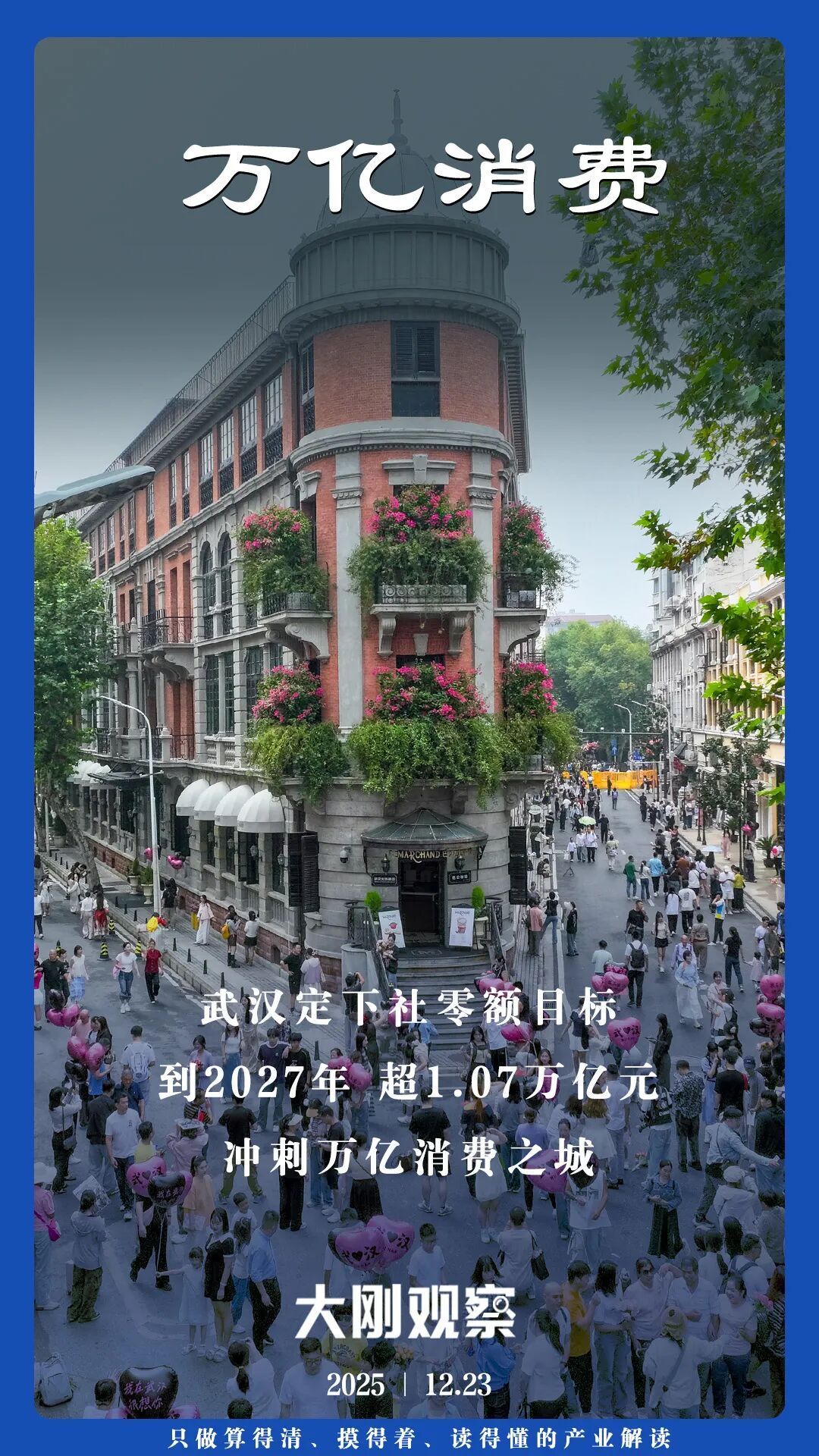 近日公布的《武汉市创建国际消费中心城市三年行动方案(2025—2027年)》中,明确了武汉步入万亿消费城市的时间点。