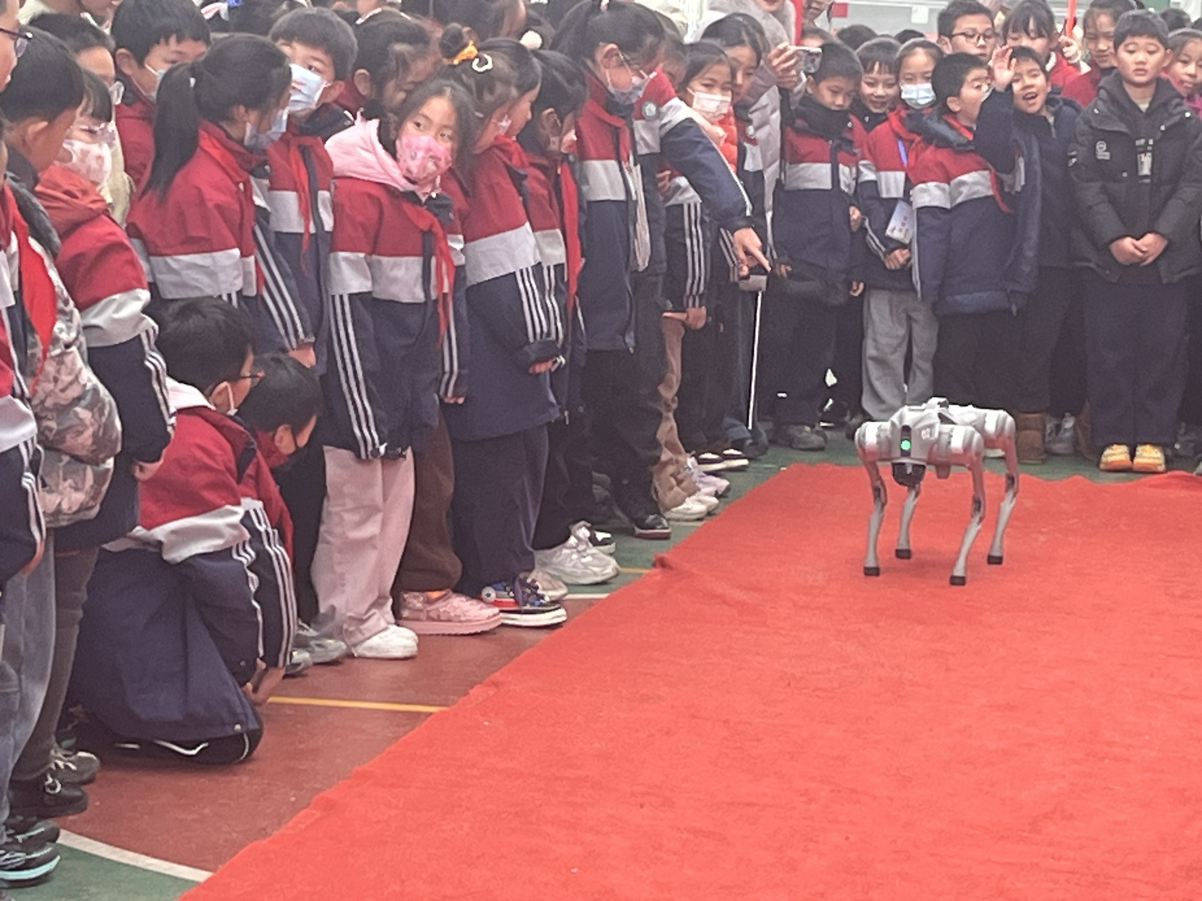 露天科技剧场里,人形机器人随乐起舞,机器狗灵活穿梭,空气炮精准击靶,声、光、电、力交织的展演,让同学们近距离触摸科技魅力。
