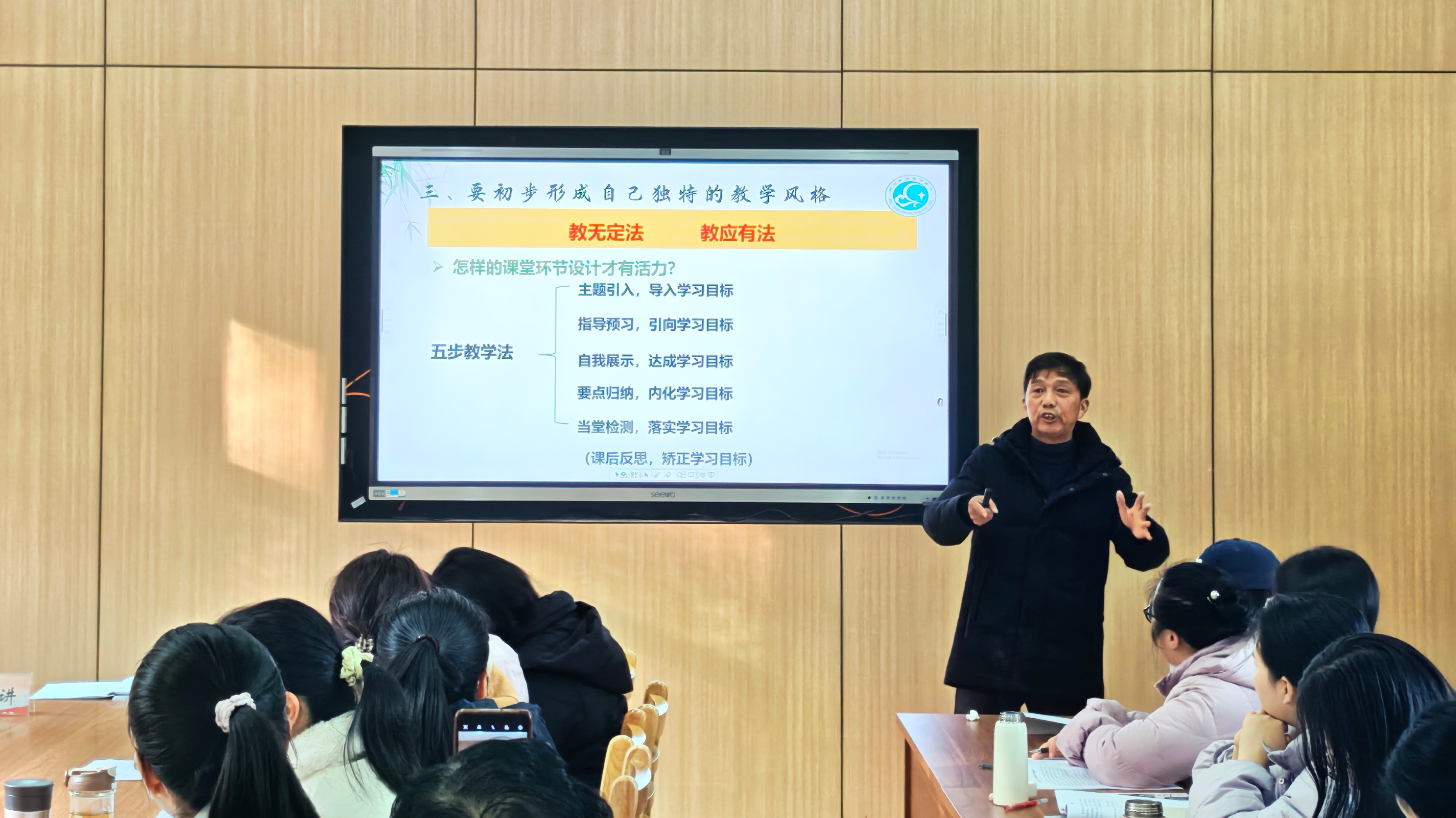 江东志老师作主题为“名师是这样炼成的——基于‘五大支柱’的成长心路与实践智慧”的讲座。他结合自身从“英山名师”到“黄冈名师”的成长实践,系统阐述了成就名师的五大核心支柱:终身学习意识、专博相济的知识储备、独特教学风格、校本教研引领及持续反思习惯。讲座内容紧扣实际,既有理论高度,更具实践价值。与会成员深有感触,受益匪浅。