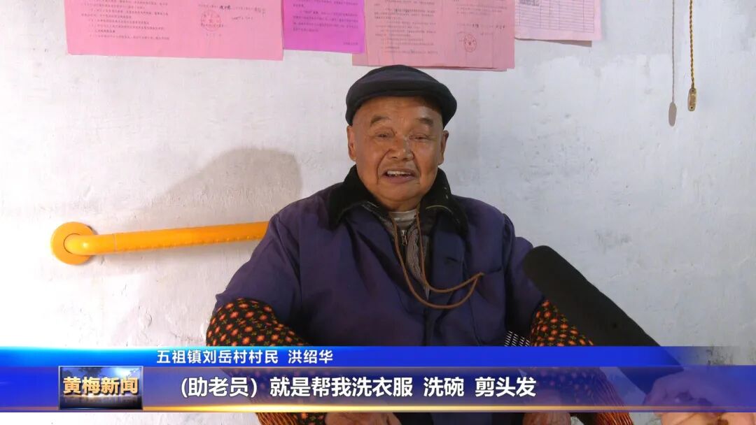 五祖镇刘岳村村民 洪绍华:助老员(他们)特别勤快,帮我洗衣服、剪头发,把我没打扫干净的地方都收拾得利利索索。感谢国家的好政策,让我们这样的老人生活有了着落,心里很暖和。