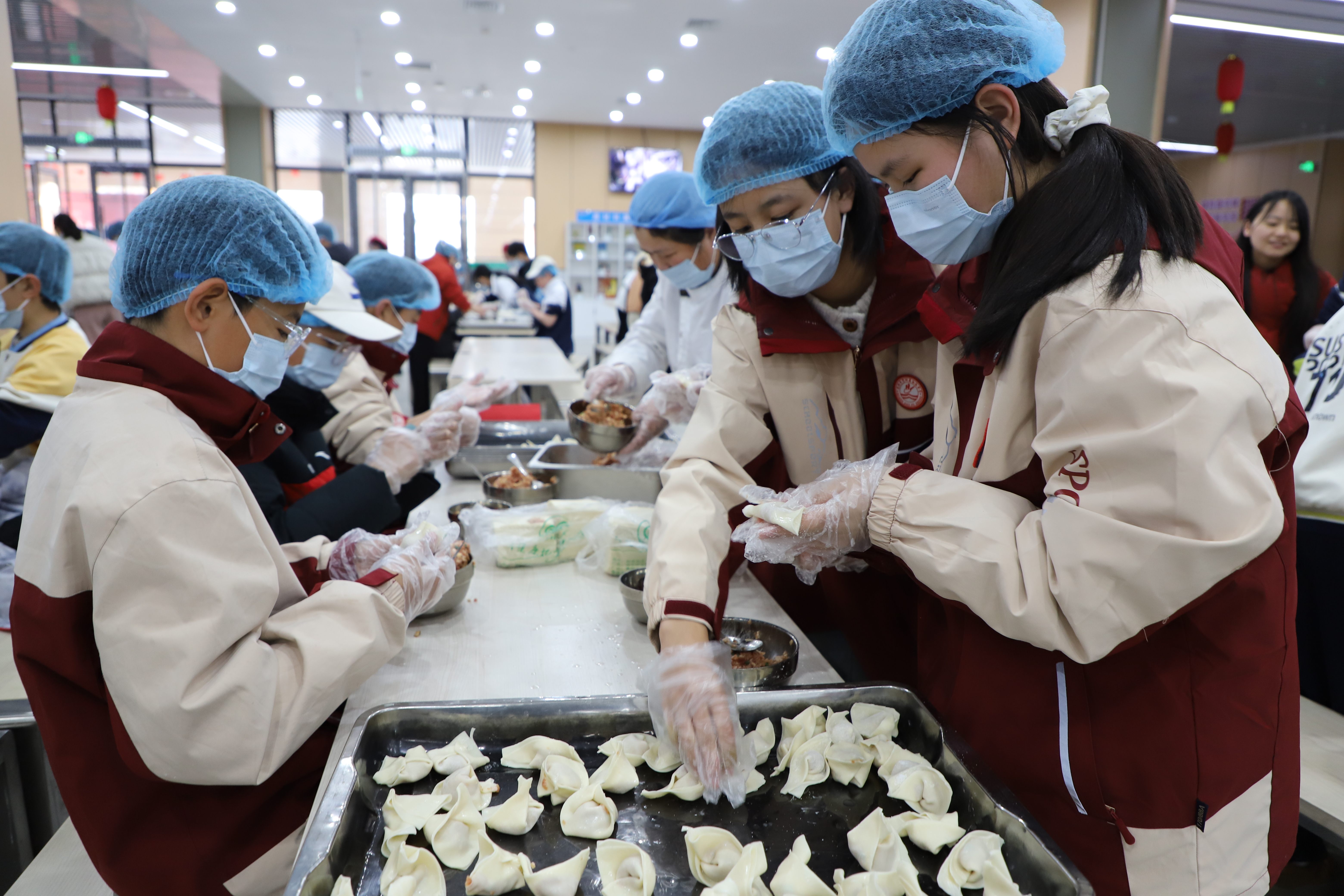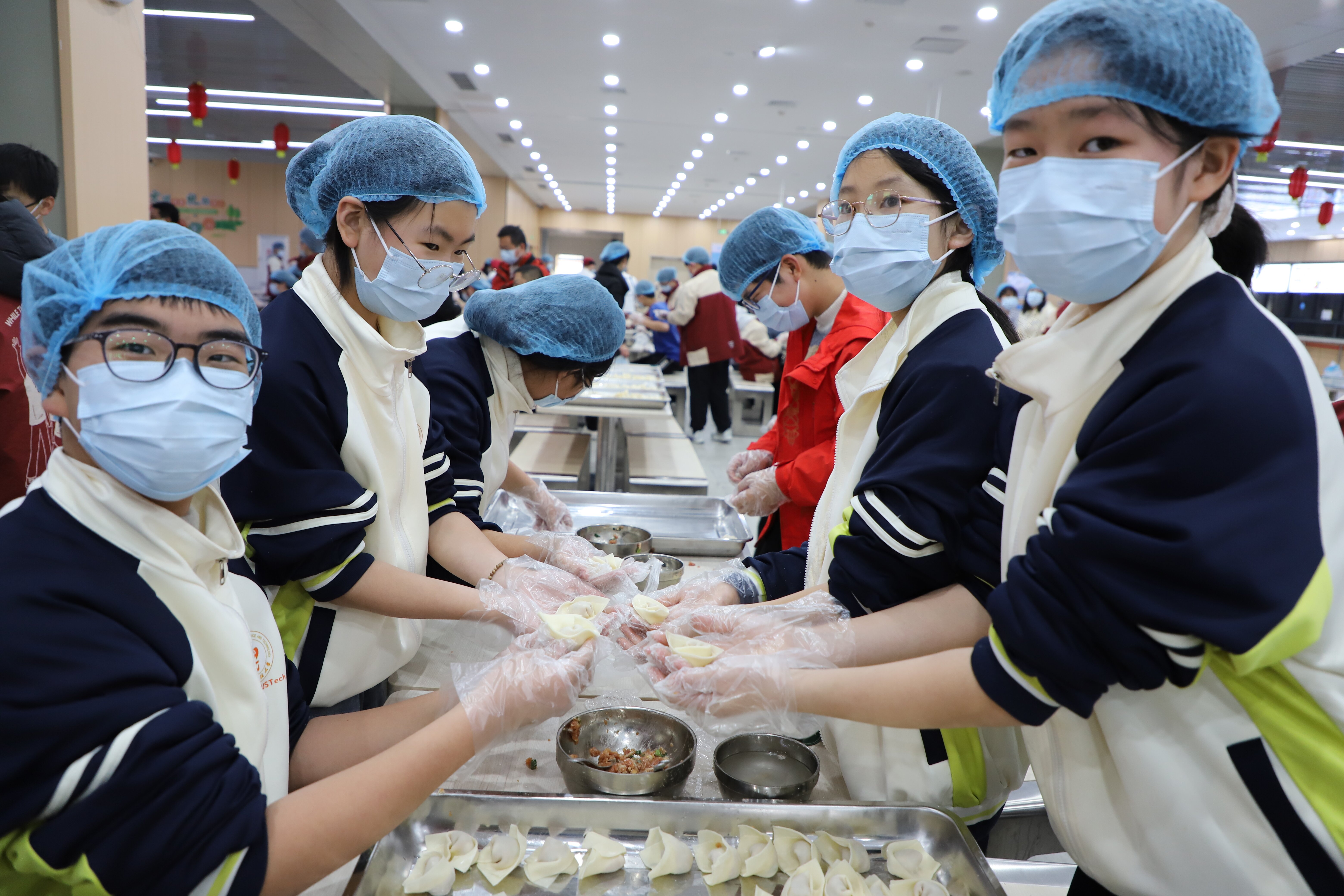 “这是第一次包水饺,一下包了这么多,感觉很有成就感。”学生王梓同边忙碌,边兴奋地说。像他一样,许多学生都是第一次动手包水饺,他们纷纷表示,以后放假回家要亲手为家人露一手。