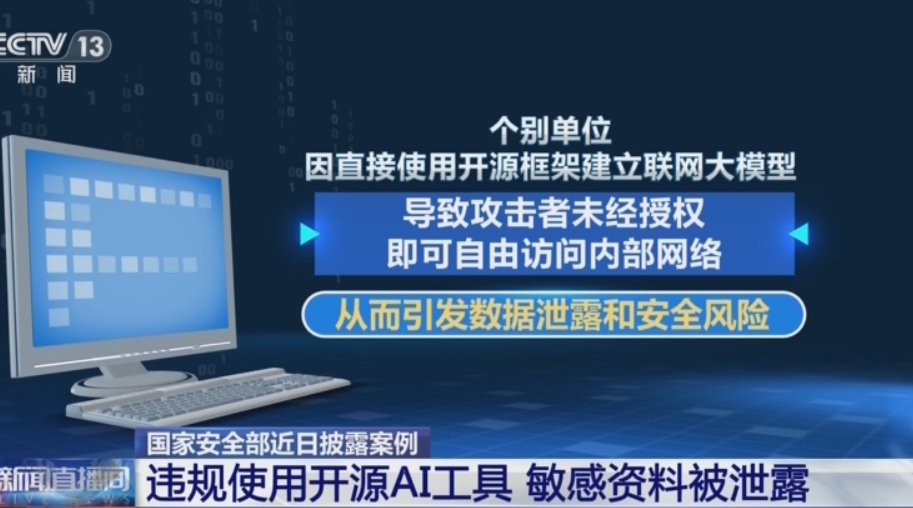 国家安全部近日披露案例,个别单位因直接使用开源框架建立联网大模型,导致攻击者未经授权即可自由访问内部网络,从而引发数据泄露和安全风险。