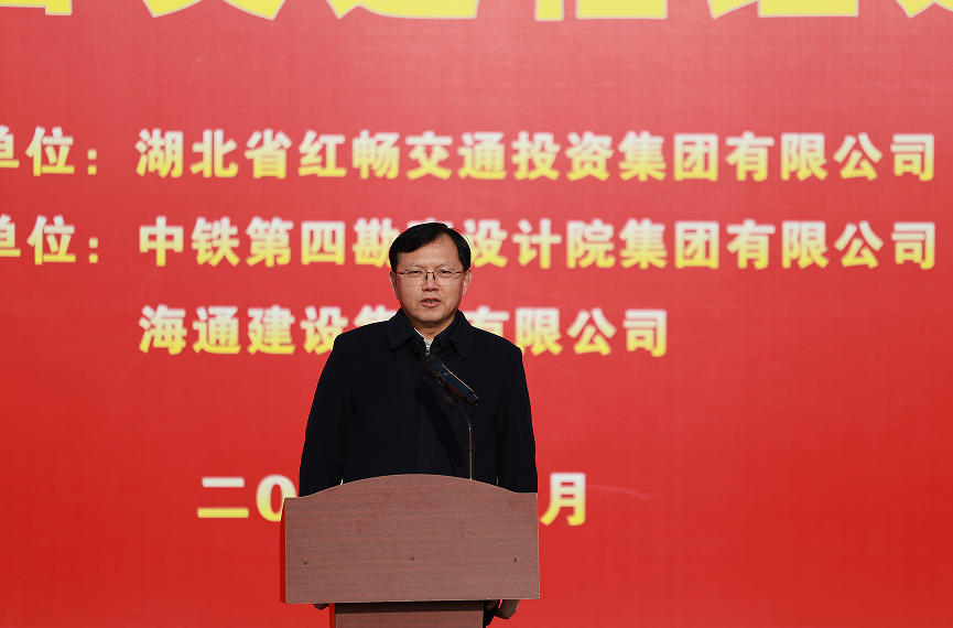 活动现场,中铁第四勘察设计院党委副书记、副院长张长能,海通集团董事长任德华分别致辞,县交投公司介绍项目基本情况。