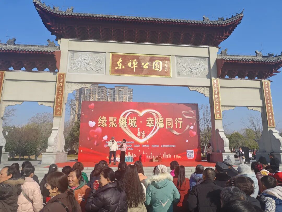1月10日,“缘聚梅城·幸福同行”青年相亲活动在黄梅县东禅公园举行,827人现场参与,36对青年牵手成功。活动同步启用固定式公园相亲角,为青年搭建常态化交友平台。