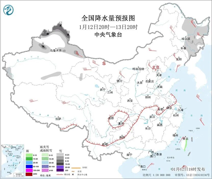 中央气象台预计,12日20时至13日20时,黑龙江中东部、吉林中东部、新疆北部、东部地区和南疆山区等地部分地区有小到中雪,其中,新疆北疆北部和沿天山西部等地部分地区有大到暴雪。