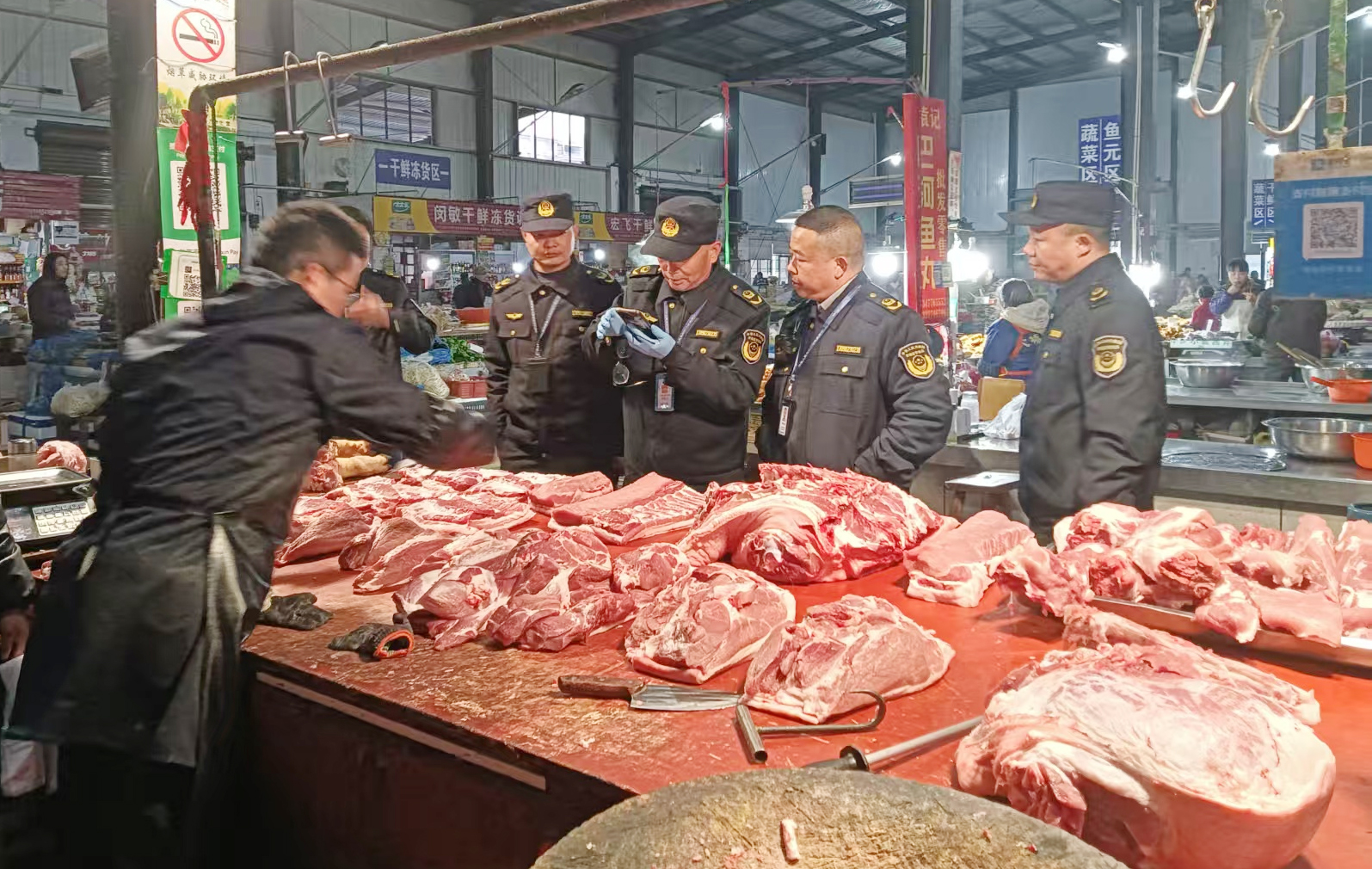 黄冈日报讯 (通讯员姚本武 潘胜)1月15日凌晨,浠水县市场监管局携手该县农业农村局、商务局组成联合执法组,聚焦食用农产品承诺达标合格证的全链条监管,采取“四不两直”方式,对城区主要农贸市场周边500米范围内的肉类经营场所开展专项整治行动,严厉打击违法违规行为,确保市民节日期间餐桌安全。