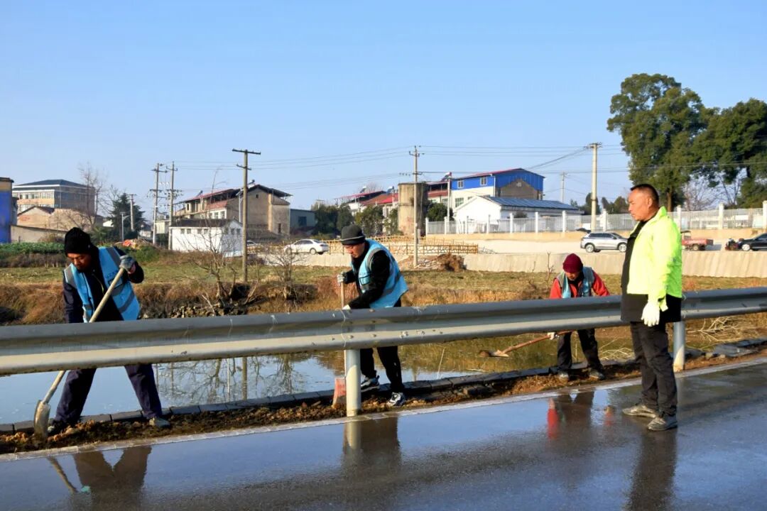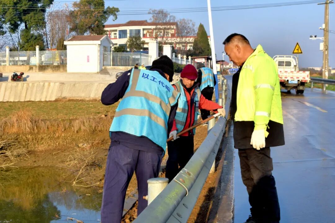1月9日,冬日暖阳下,黄州区208县道孙唐线的工地上活跃着几个熟悉的身影——孙海柱和十余名工友都是周边的村民,他们正抢抓枯水期,在村路临水路段拓路肩、筑驳岸。