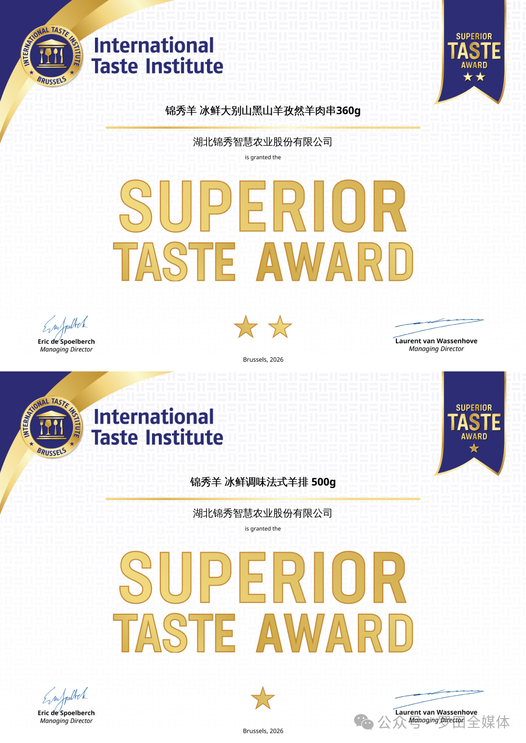 锦秀羊两款经典产品斩获星级认证,也标志着国产生鲜羊肉制品正式获得全球权威味觉认可。