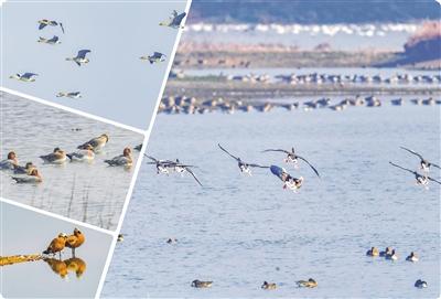 湖北省2026年越冬水鸟调查近日结束,1月16日,我省多地传来越冬水鸟种群数量创历史新高和珍稀水鸟频繁现身的喜讯,东方白鹳等珍稀鸟类数量创下新高。洪湖、龙感湖、沉湖等多处重要湿地观测到水鸟总数均超过10万只,大规模鸟群游弋集结形成的“鸟浪”景观时常出现。楚天都市报极目新闻记者李辉摄