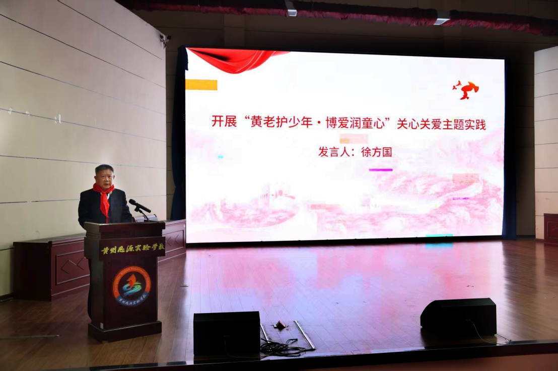 在“黄老护少年·博爱润童心”关心关爱主题实践启动式上,区关工委主任徐方国作了动员讲话。他指出,组织开展“黄老护少年·博爱润童心”关心关爱主题实践,就是要发挥关工委组织优势和关心下一代联席会议制度优势,汇聚“五老”力量,链接社会资源,创新关爱形式,促进贤老护幼,用博大爱心滋润孩子们的纯洁心灵,引导他们树立正确的世界观、人生观、价值观,德智体美劳全面发展,做合格的社会主义建设者和接班人。他强调,博爱是超越亲情的大爱,是充满社会责任感的挚爱。要更好发挥“五老”作用,推进家校社协同关爱,形成“家庭尽责、‘五老’助力、社会协同”的关爱网络,聚焦身体健康、心理健康、品格塑造、安全保护、学业进步、科技素养、社会交往、法律修养、困难帮扶、权益保护等十个方面的重点,努力营造健康、友善、充满希望的未成年人成长环境,让少年儿童在爱的阳光下,心有所依,情有所系,学有所教,难有所帮,安有所保,自信自强,快乐成长。他要求各级关工委组织要聚焦主题,精心策划,搭建载体,创新方式,推进关心关爱走深走实,各位同学要珍惜机会,积极参与,主动共情共融,汲取精神力量,社会各界要持续关注、大力支持关心下一代工作,共同托举好明天的太阳。