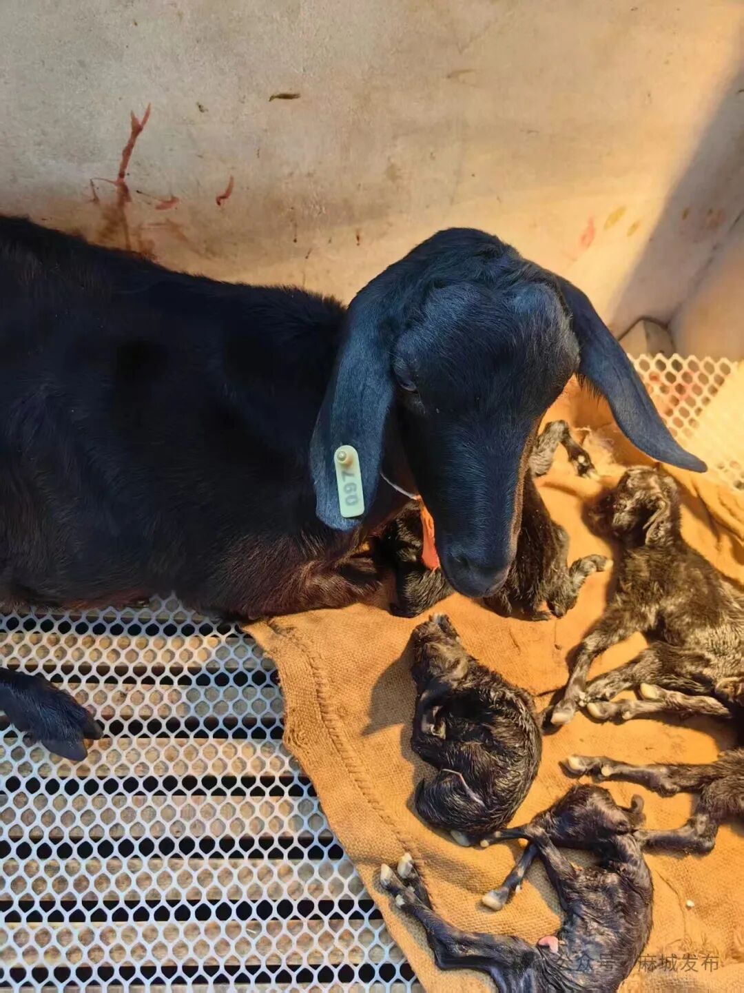 2025年12月4日,顺河镇垸店村湖北都宏生态农业黑山羊养殖基地,一只麻城黑山羊顺利产下“七胞胎”。