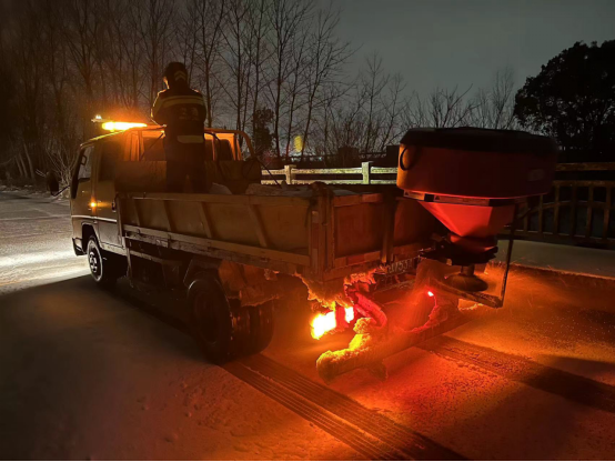为应对此次雨雪冰冻天气,黄州交通公路部门提前部署,检修设备、清点物资,并加强应急值守。19日晚起,随着雨雪影响加剧,辖区部分桥梁出现积雪。区交通公路部门立即调配除雪辊、撒布机等设备,组织应急队伍连夜开展清雪和融雪剂撒布作业,有效遏制桥面结冰。
