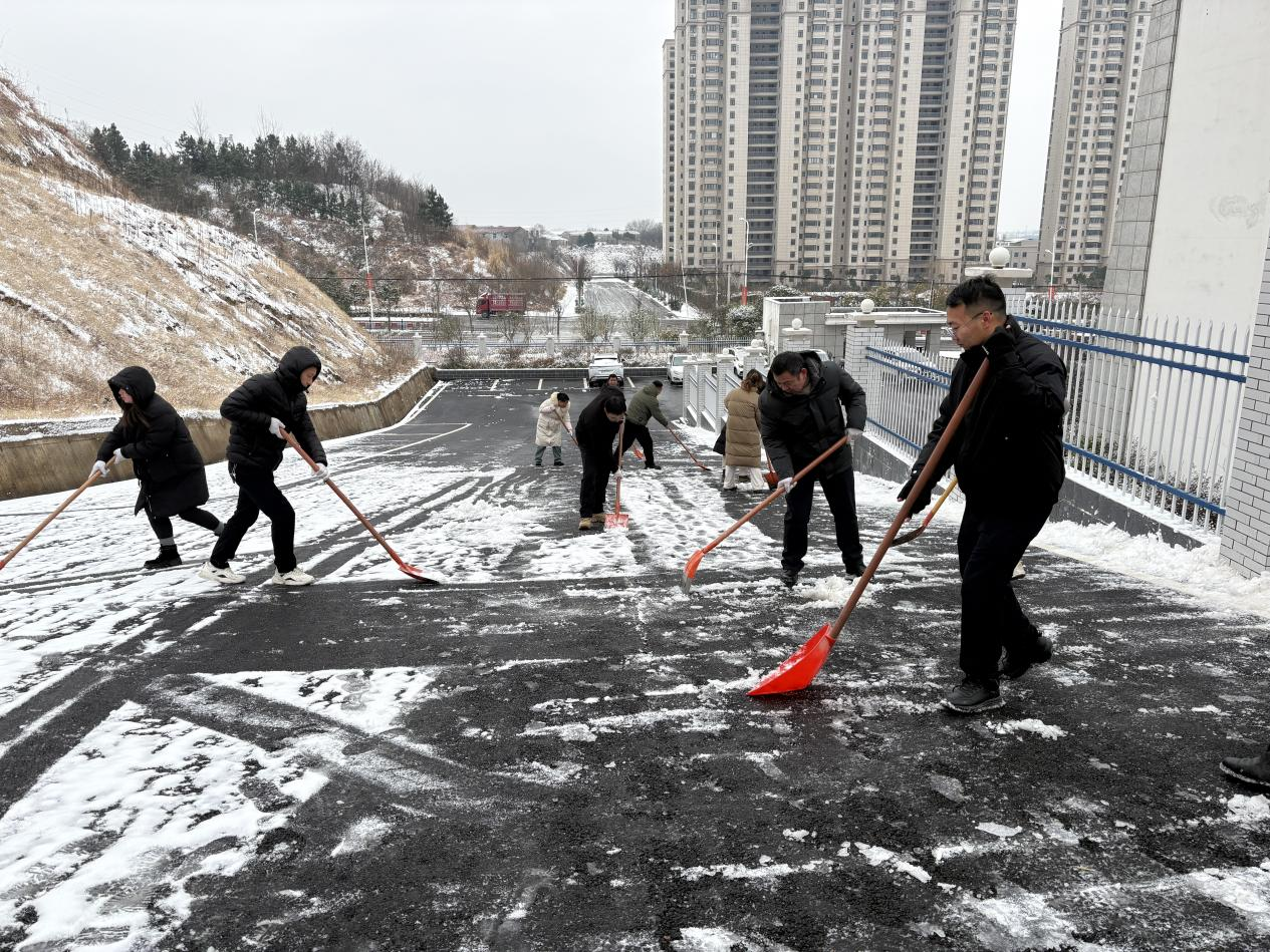 1月20日,市生态环境局红安县分局党组书记、局长程中信即刻部署,靠前指挥,干部职工不畏严寒,全员出动,挥舞雪铲、铁锹,对管辖范围内的人行步道、单位出入口、台阶坡道及重点公共区域展开了集中清扫。在局属院落内部,干部职工全员上阵,对办公楼前后、主干通道、停车场、台阶坡道等区域进行彻底清扫,确保内部工作环境安全畅通。在包保社区上店社区,与社区工作人员、志愿者协同作战,重点对社区主要出入口、人行步道及背街小巷的积雪积冰进行集中清理。内外联动,确保了“自家门”与“责任田”同步畅通。