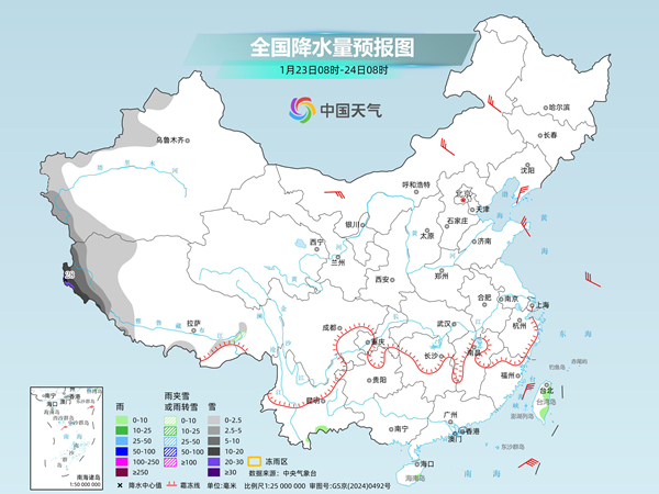 今天,南方雨雪继续缩减,湖南、贵州、江西等地仍有冻雨。明后天,中东部大部再次进入雨雪稀少的状态,新疆、西藏西部等地降雪增多。