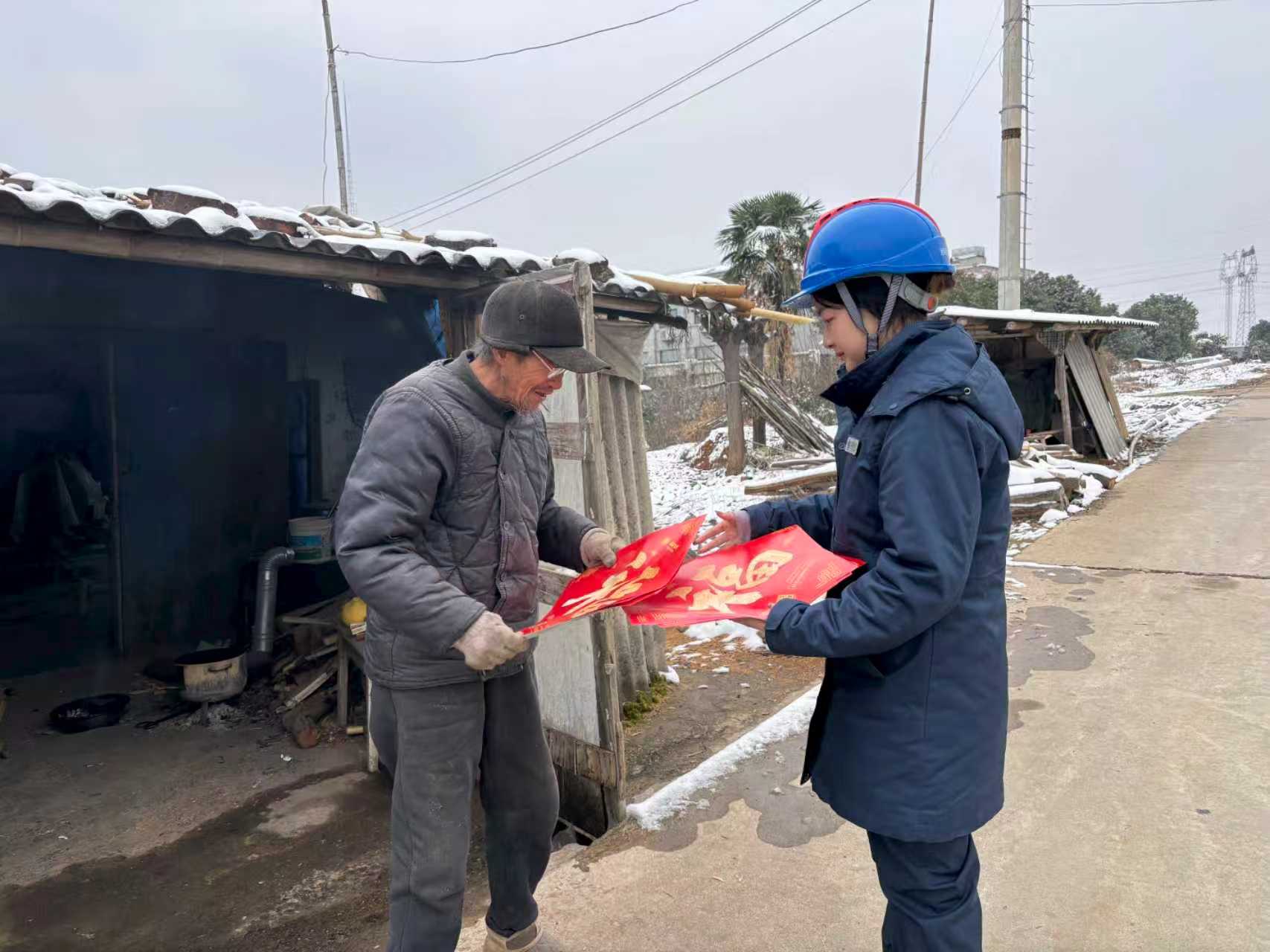 在走访过程中,该公司员工聚焦返乡人员、孤寡老人、困难家庭等七类重点用户,深入田间地头和村民家中,对长期闲置的室内线路、开关、插座等用电设备进行“把脉问诊”,细致排查漏电、老化等安全隐患。每到一户,他们都会耐心讲解用电注意事项,留下网格服务电话,并主动收集用电需求,确保村民遇到问题能第一时间得到响应。“家里空了大半年,正担心用电安全,你们就上门检查了,还送了福字,太贴心了!”返乡村民王大姐接过供电员工递来的“福”字,脸上洋溢着笑容。