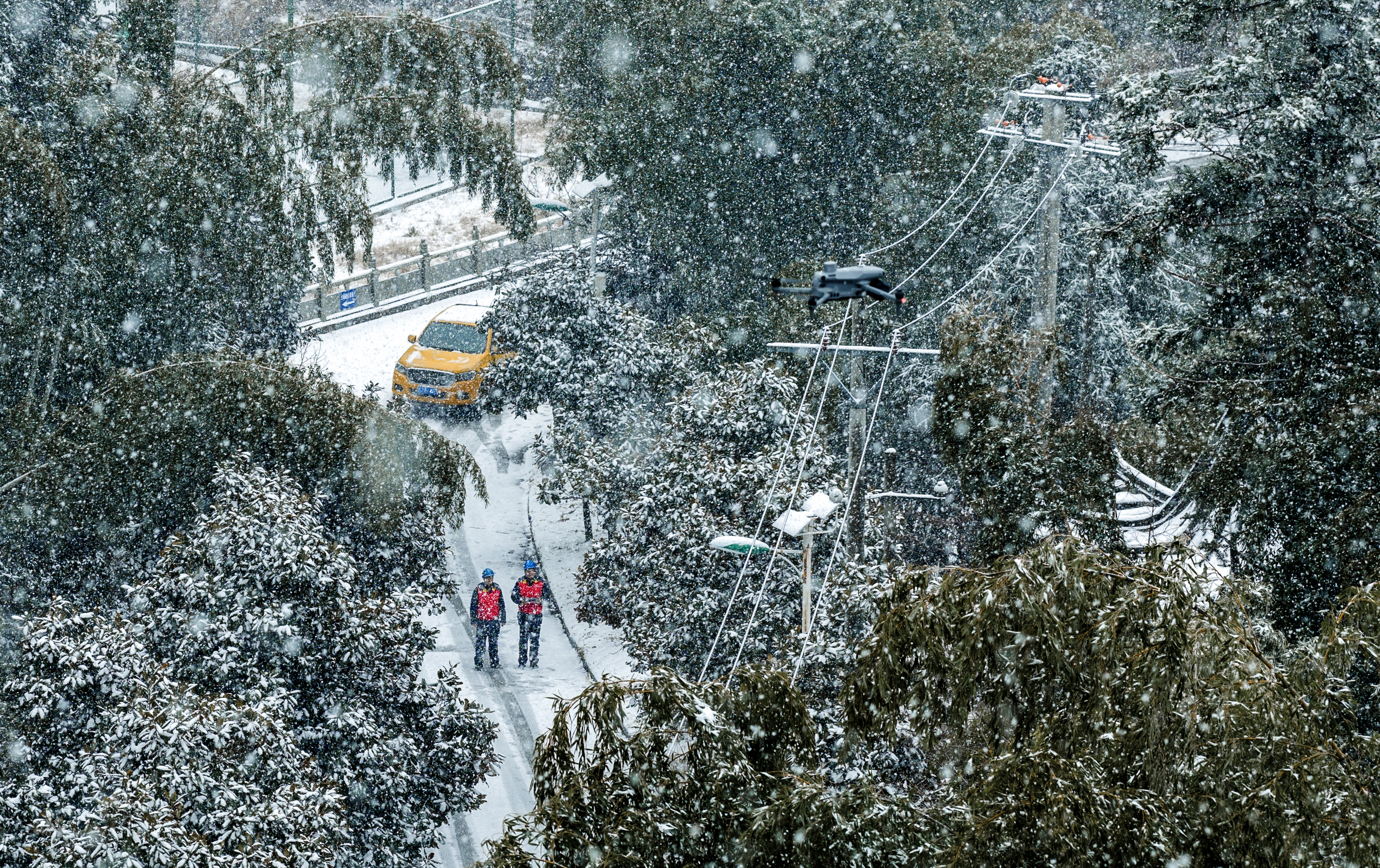 1 月 20 日,国网黄冈供电公司运维人员赴浠水三角山对辖区内输电线路开展特巡,重点观测导线覆冰厚度、弧垂变化及杆塔受力情况,全力排查低温雨雪天气下的电网安全隐患,筑牢山区供电 “安全防线”。 (丰俊 郑文龙摄)