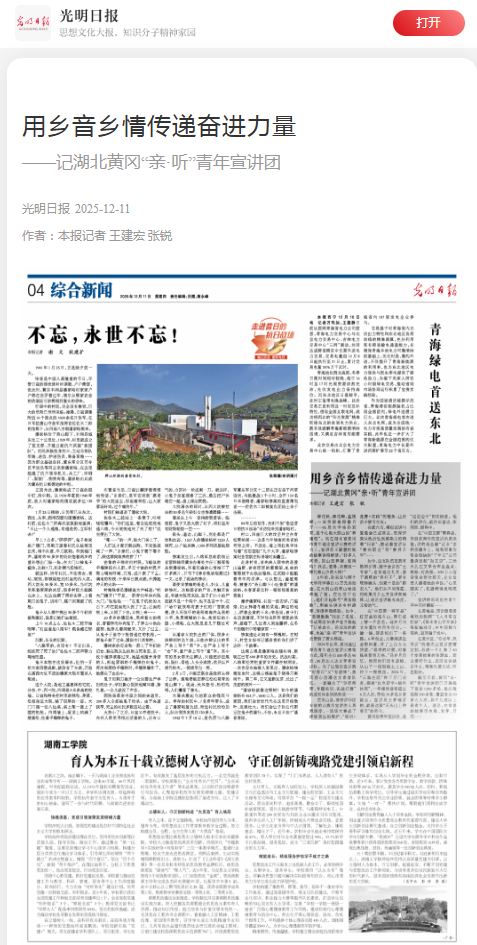 2025年12月11日,光明日报《用乡音乡情传递奋进力量》一文中,称黄冈的青年宣讲员,是“边说边干”的实践者。