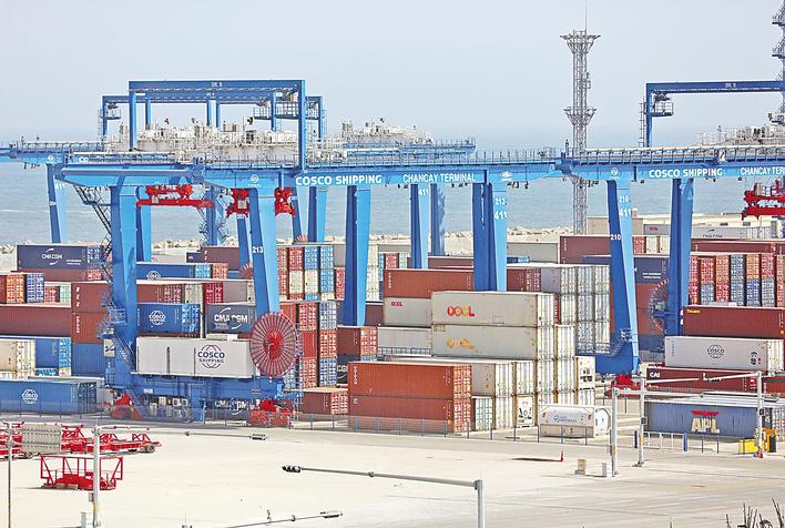 2025年10月7日拍摄的秘鲁钱凯港码头。预计钱凯港一期工程每年将为秘鲁带来45亿美元收入,创造8000多个直接就业岗位。(新华社发)