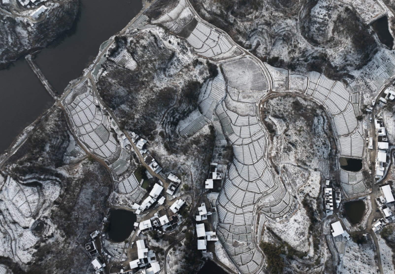 元月21日,冬日的白莲河畔寒意浸人,一场瑞雪悄然降临,为罗田县匡河镇文家坊村披上了一层皎洁银装。当无人机缓缓升空、俯瞰大地,层层叠叠的药材梯田在白雪覆盖下,竟勾勒出酷似奥特曼身形轮廓的奇妙纹理。这幅由本村摄影爱好者刘先生拍摄、名为《农民的奥特曼》的航拍作品,不仅迅速刷爆当地朋友圈,更让这个藏于鄂东鱼米之乡的小山村,连同它的药材种植故事,走进了千家万户。