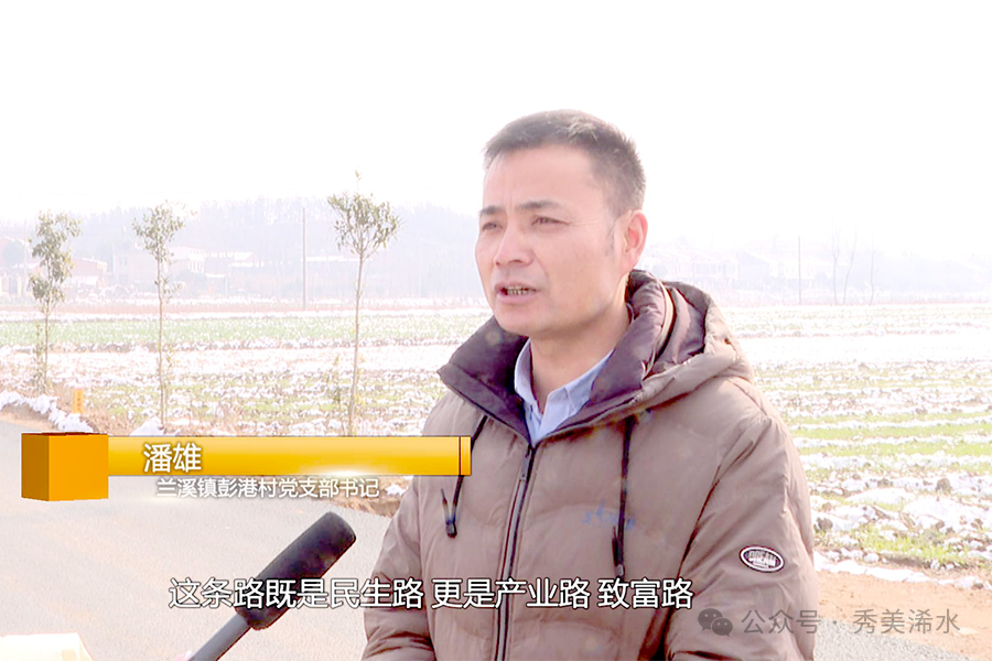 兰溪镇彭港村书记 潘雄:我村修了2.7公里的柏油路,彻底地解决了村民的出行难的问题。蔬菜大棚、中药材、莲子等特色产业运输也更顺畅。这条路既是民生路,更是产业路、致富路,为乡村振兴注入了新的动力。下一步我们将加强管理,让这条民心路持续的惠民,带动产业的增效,村民的增收。