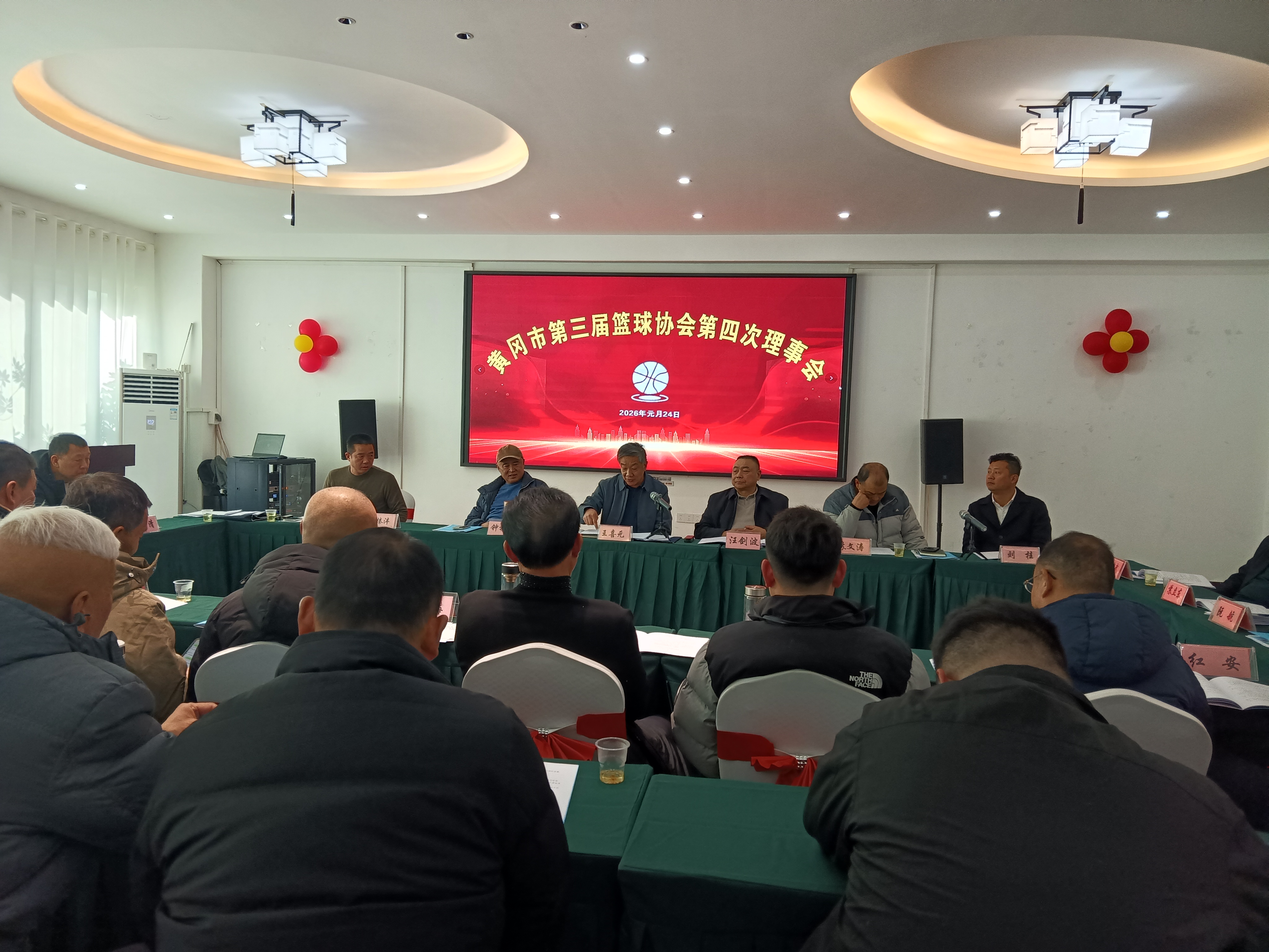 2026年1月24日上午,黄冈市第三届篮球协会第四次理事会在黄州召开,市篮协会长、副会长以及各县市篮协会长秘书长参加。