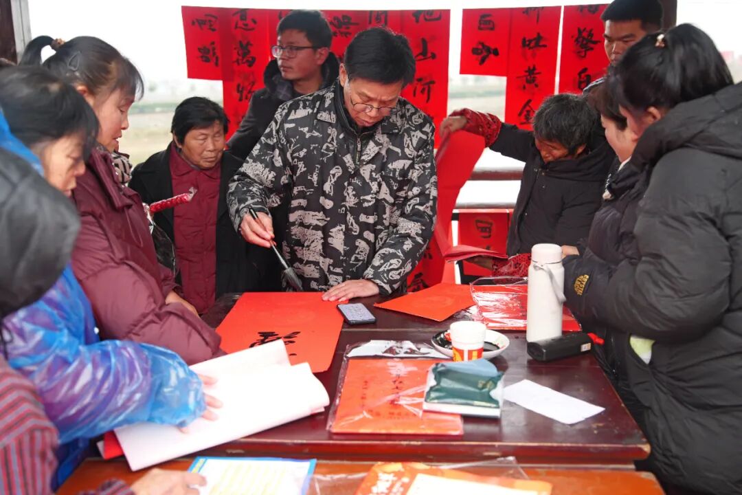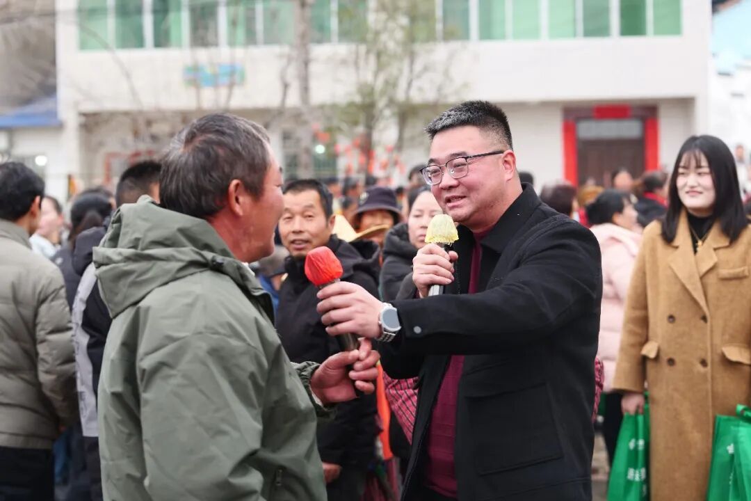 活动现场年味浓郁、暖意融融。迎春集市上,黄州书画诗联协会书法家现场挥毫赠春联,红纸墨香传递传统年俗温情;特色糖画、风味腊货等摊位有序排布,“六进六送”便民服务与移风易俗趣味游戏穿插其中,让村民在逛购中尽享实惠。
