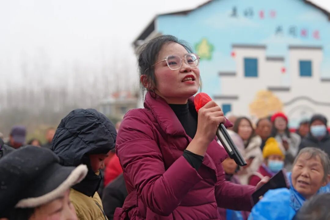 午后两点三十分,彩烟袅袅升空,文艺演出正式拉开帷幕。大鼓《红红火火总是年》鼓点铿锵、气势如虹,瞬间点燃全场热情;理论宣讲环节,当地烈士后代现身,依托红色故事,运用通俗语言生动诠释红色记忆,传承革命精神;黄梅戏《天女散花》婉转悠扬、韵味绵长,将地方戏曲的独特魅力展现得淋漓尽致,让村民在家门口过足戏瘾。