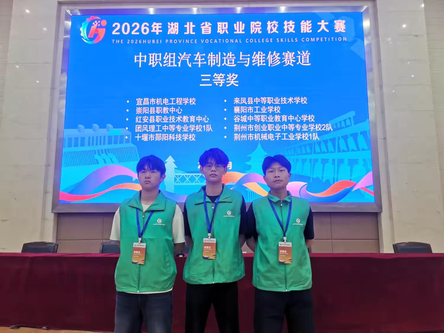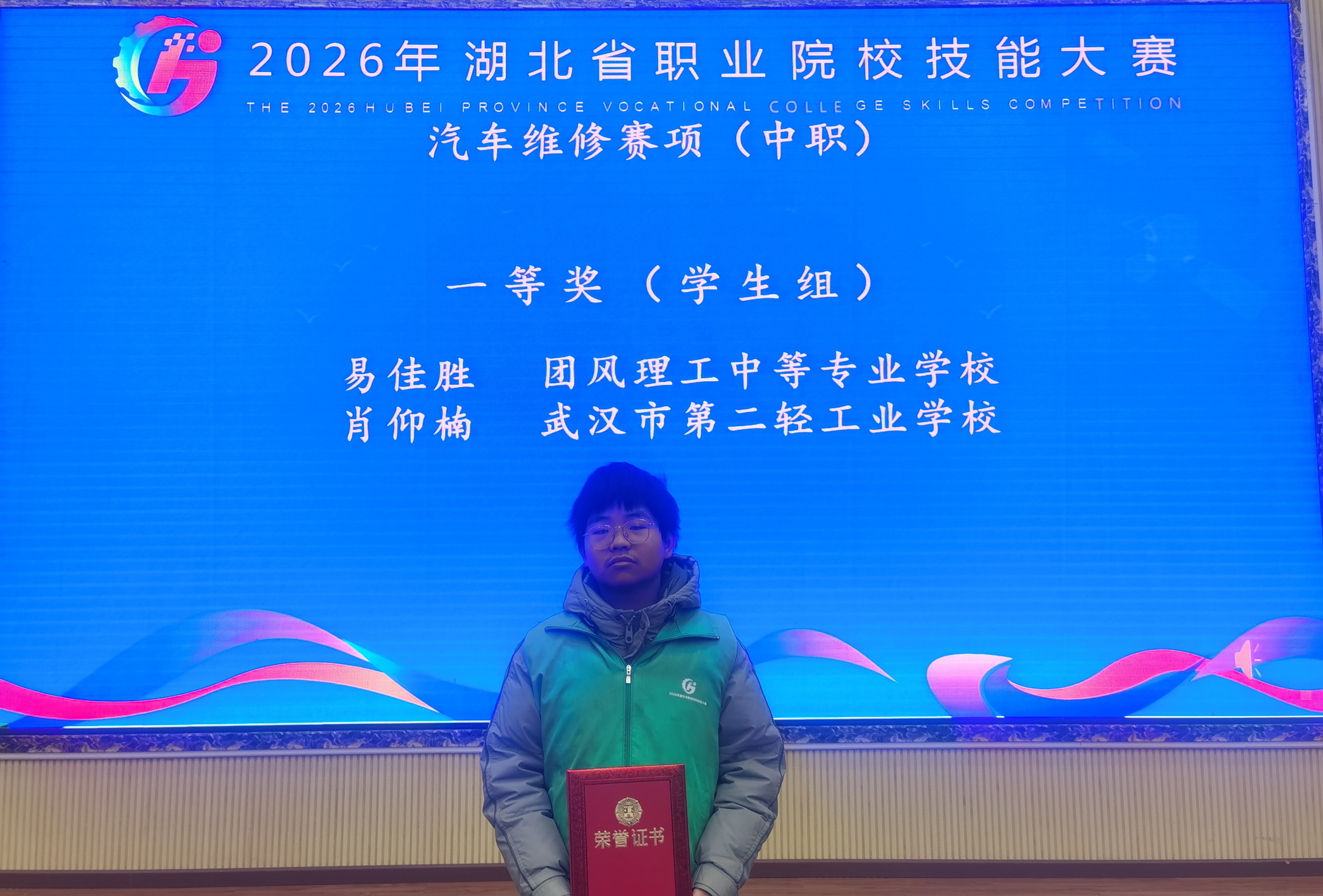 黄冈日报讯(通讯员段志全)近日,2026 年湖北省职业院校技能大赛中职组汽车制造与维修赛道各赛项圆满收官。团风理工中等专业学校代表黄冈市参加本次技能大赛。参赛师生奋勇争先、凝心聚力,在汽车制造与维修赛道各赛项中多点突破、捷报频传,荣获两项一等奖和三项三等奖。其中胡晓、薛风两位老师获新能源汽车维修赛项中职教师组全省第一名,易佳胜同学获汽车维修赛项中职学生组全省第一名。以亮眼战绩彰显了学校职业教育的扎实成效与育人实力。