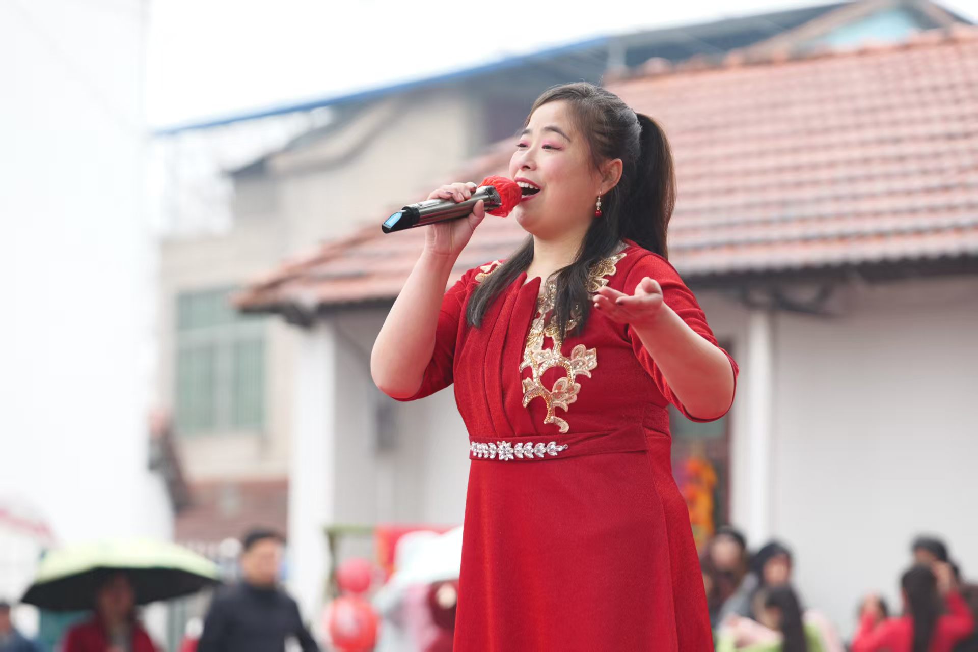 下午2:30,随着大鼓《红红火火总是年》的雄浑节奏响起,文艺演出正式拉开帷幕。