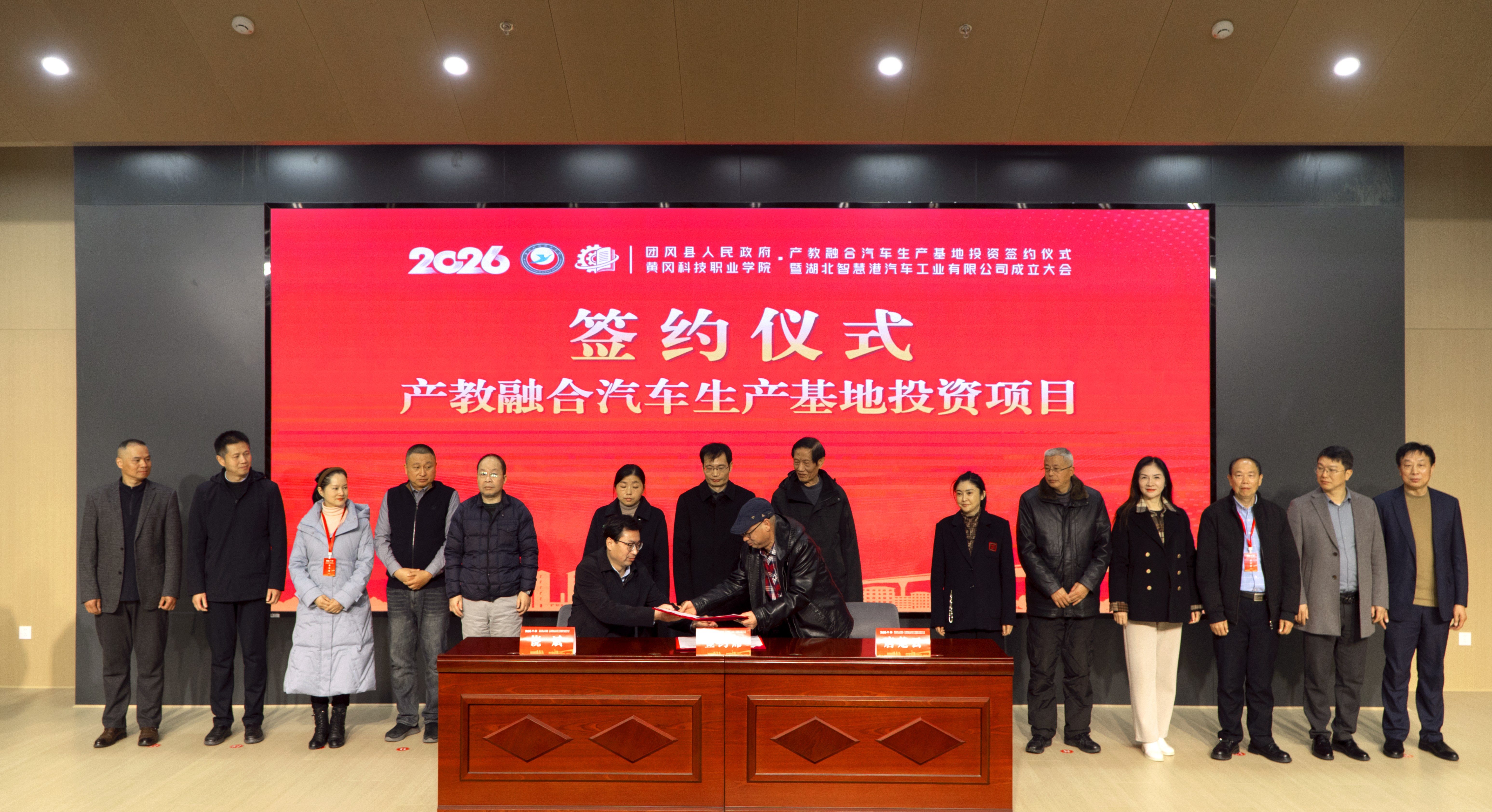 1月26日,黄冈首个政校企共建产教融合汽车生产基地项目,在黄冈科技职业学院何家湖校区签约落户。该项目总投资5亿元,全面投产后预计年产值超10亿元、年出口额超2亿元,将有效填补黄冈市专用车生产领域的空白。
