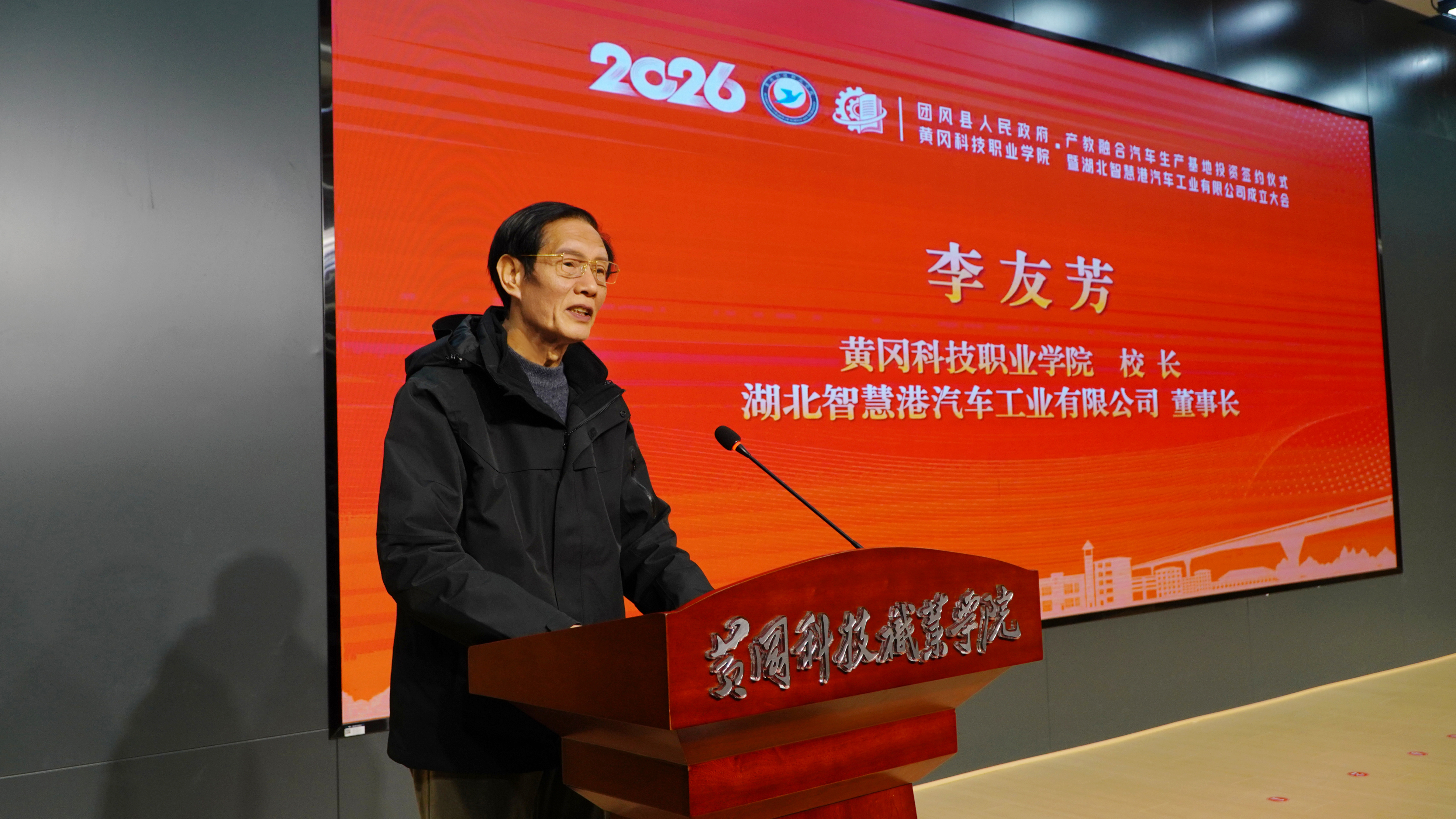 黄冈科技职业学院校长、湖北智慧港汽车工业有限公司董事长李友芳表示,公司的成立是学校落实国家产教融合战略、深化职业教育改革的关键举措,标志着学校产教融合从“合作共赢”迈入“共生共荣”的新阶段。学校将以此次共建为契机,推动产业需求深度融入人才培养全过程,深化校企协同育人机制,全力打造区域产教融合示范标杆,为地方产业发展注入强劲动力。