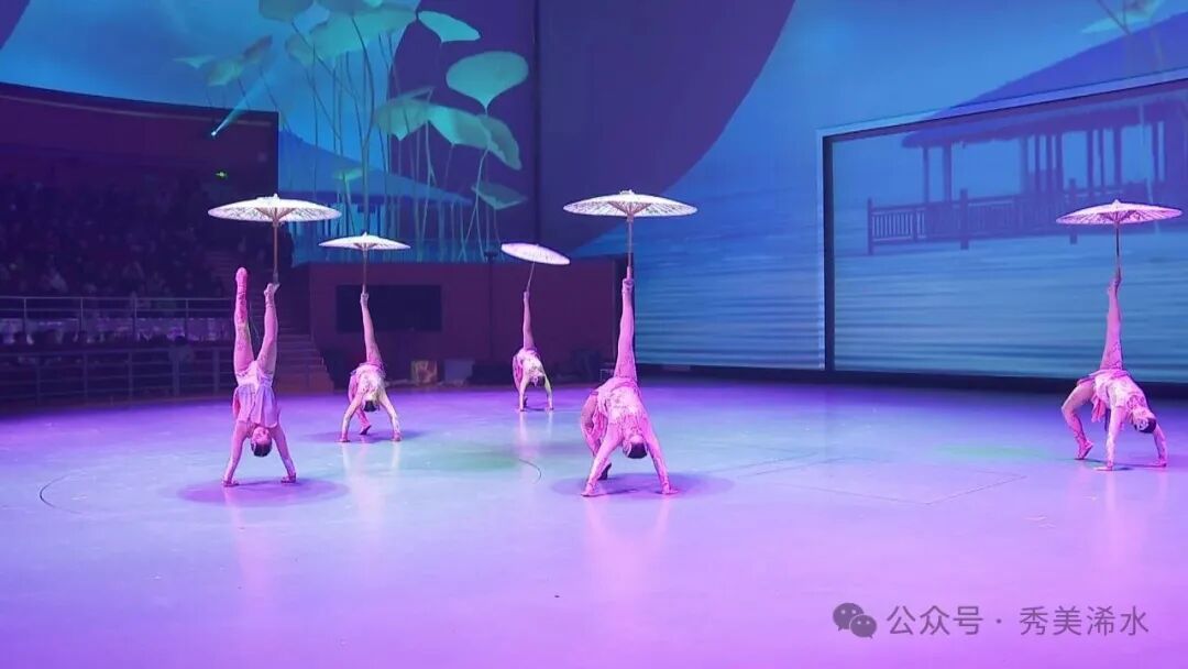 演出在黄冈市(浠水)杂技团气势恢宏的《舞狮》中拉开序幕。演员们在高桩之上腾挪跳跃,将雄狮的威武与灵动展现得淋漓尽致,瞬间点燃全场气氛。随后的《俑·顶碗》《空竹·雅趣》《坛三彩》等节目轮番上演,或展现历史底蕴,或演绎柔美诗意,或挑战人体极限,让观众目不暇接。晚会高潮由浠水本土原创节目《红烛》推向顶峰,演员在高达5米的倾斜道具上完成连续47级蹦梯,将不畏艰难的“红烛精神”诠释得淋漓尽致,引发现场雷鸣般的掌声。