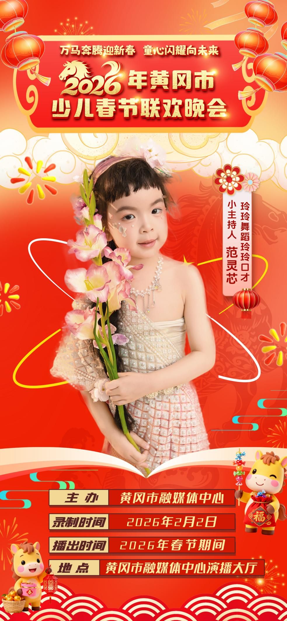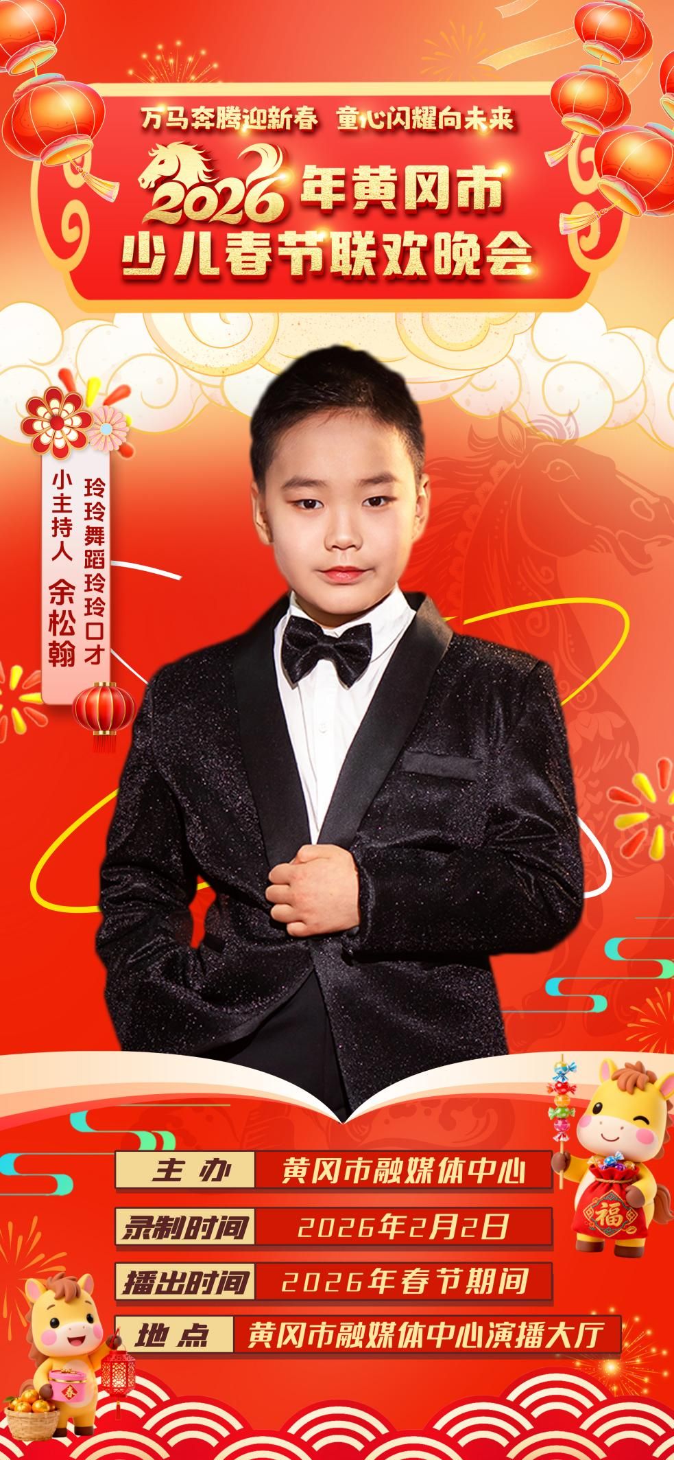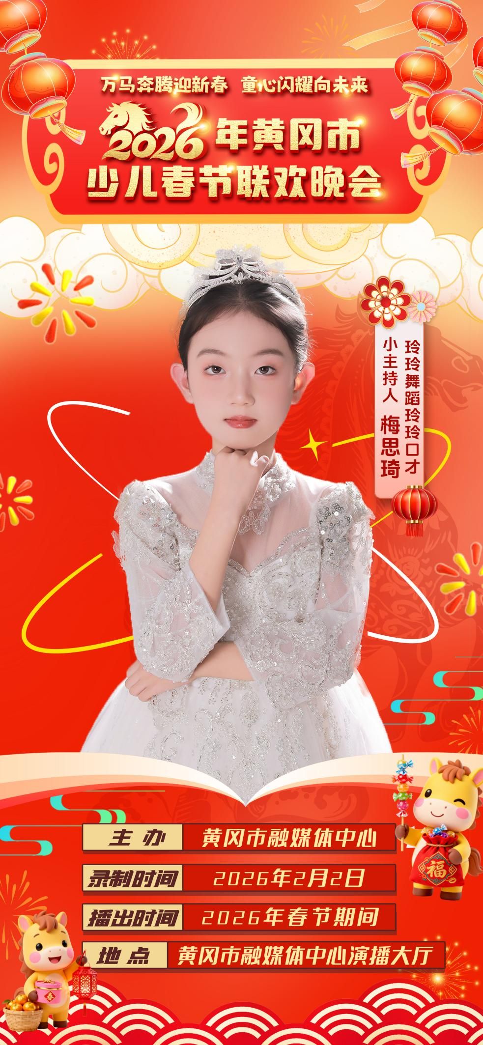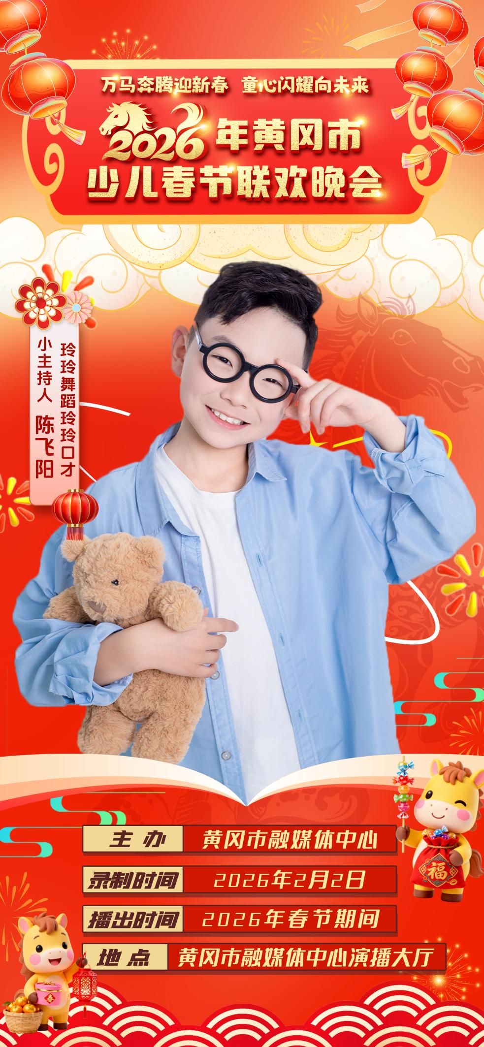 由黄冈市融媒体中心主办的《万马奔腾迎新春 童心闪耀向未来——2026年黄冈市少儿春节联欢晚会》将于2月2日开启录制,一起来认识今年少儿春晚萌动•启航篇的小主持人吧!