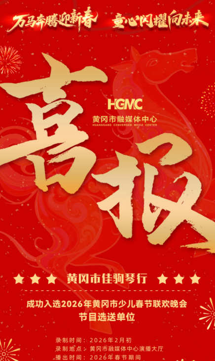 在 2026 年马年新春即将到来之际,由黄冈市融媒体中心倾力打造的 “万马奔腾迎新春,童心闪耀向未来”2026年黄冈市少儿春节联欢晚会,将成为黄冈全市少年儿童展示自我、逐梦绽放的盛大舞台。作为黄冈本土最具影响力的少儿文艺品牌活动之一,本届晚会延续了往届高水准、高口碑的制作传统,以 “童心” 为内核,以 “未来” 为方向,通过丰富多彩的艺术形式,全方位展现黄冈少年儿童积极向上、朝气蓬勃的精神风貌,为全市观众送上一份充满童真与活力的新春祝福。