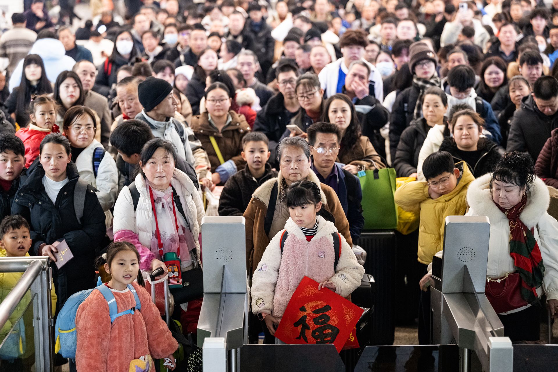2月2日,是2026年春运首日,武昌火车站旅客明显增多。(湖北日报全媒记者 朱熙勇 摄)